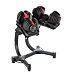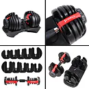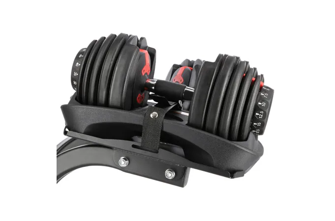 Po vybalení stačí súpravu umiestniť do špeciálneho stojana a otáčaním vonkajších ovládačov nastaviť príslušnú záťaž, ktorá je vyznačená v librách (1 libra = 0,45 kg). Systém zámkov spojí kombináciu závaží s činkou, ktorá zodpovedá zvolenej záťaži, a ostatné závažia zostanú v stojane. Ak potrebujete upraviť hmotnosť, potom činku vložíte do stojana, otočíte ovládačom a môžete pokračovať v tréningu.