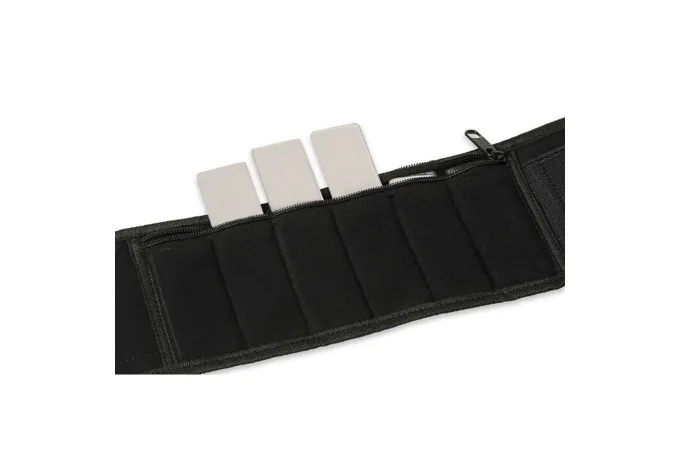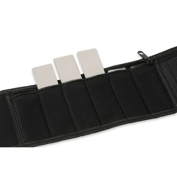 Každý z dvoch záťažových pásov je vybavený 6-timi oceľovými vložkami s hmotnosťou 90 gramov, plný pás má teda hmotnosť 21 oz (0,6 kg).