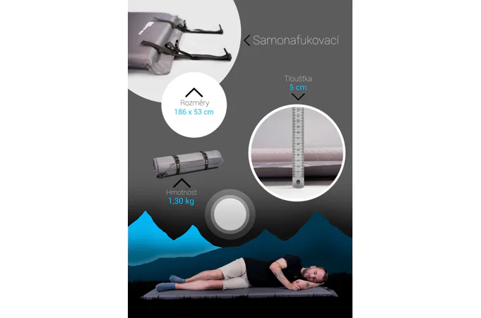 Samonafukovacia karimatka v tomto väčšom prevedení je určená na komfortné ležanie. Pri príprave na spanie alebo ležanie stačí povoliť ventil a karimatka sa sama, počas cca 5-tich minút, nafúkne. Je možné napomôcť rýchlejšiemu nafúknutiu ústami, poprípade tým možno docieliť väčšiu tuhosť karimatky. V niektorých prípadoch je nutné karimatku pri prvých dvoch použitiach ústami dofúknuť, aby sa pena vo vnútri roztiahla na patričnú hrúbku a následne sa už ľahko nafukovala sama.