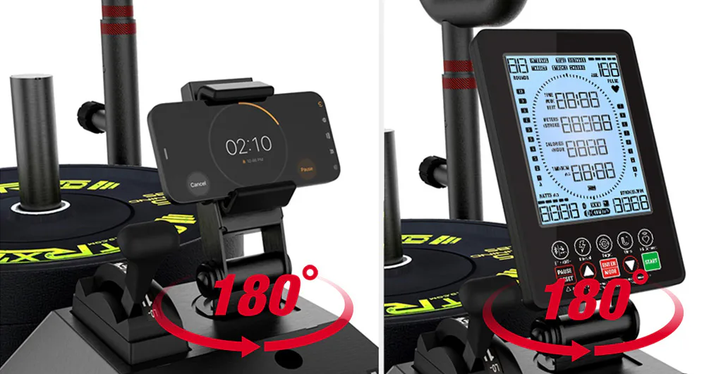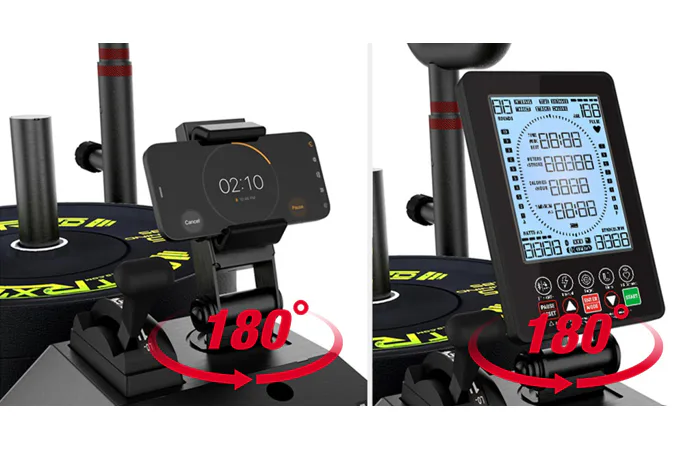 Součástí stroje je také LCD displej, který vám zobrazí základní údaje o tréninku. Díky bluetooth připojení můžete spárovat trenažer XEBEX k vašemu tabletu, nebo smartphonu a používat tak při tréninku různé aplikace. Tepovou frekvenci lze měřit pomocí hrudního pásu, který není součástí balení.