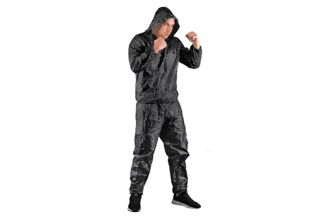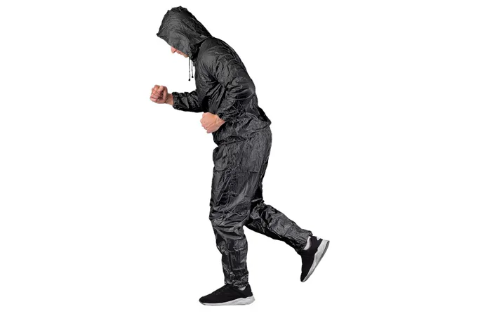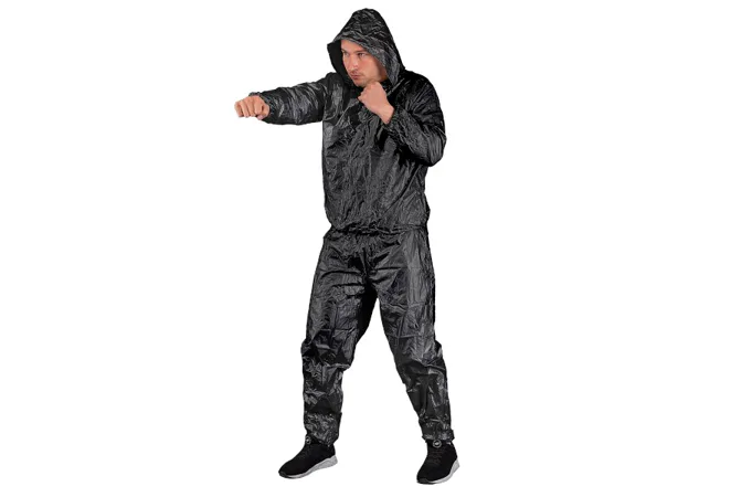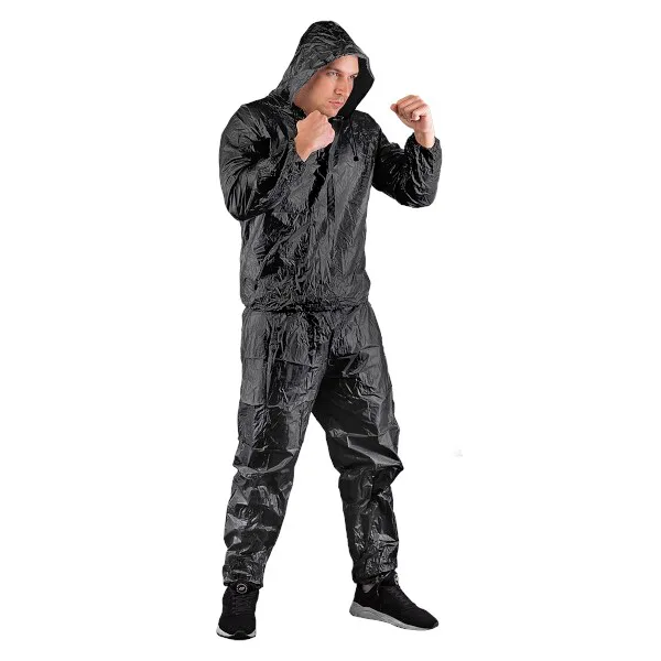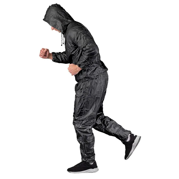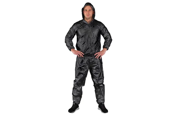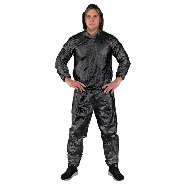 Sauna oblek HMS DSS12 je nepriepustný komplet nohavíc a trička s dlhým rukávom a kapucou. Sauna dress je ideálnym nástrojom pre športovcov, ktorí potrebujú rýchlo znížiť telesnú hmotnosť o 2 - 3 kilogramy. Tréning v obleku spôsobuje, že rýchlo stúpa povrchová teplota tela, spaľujeme väčšie množstvo energie, viac sa potíme a z organizmu odvádzame väčšie množstvo vody, ako v klasickom oblečení.