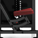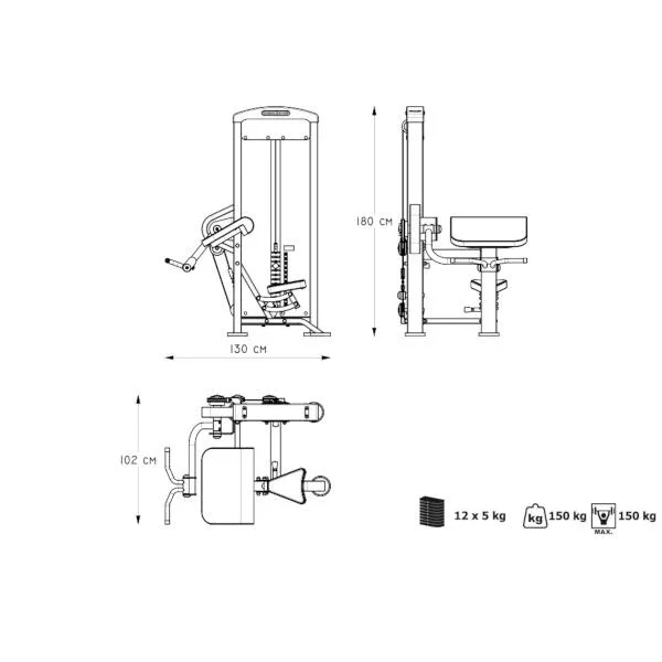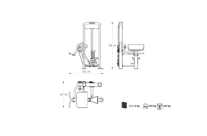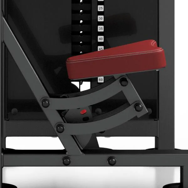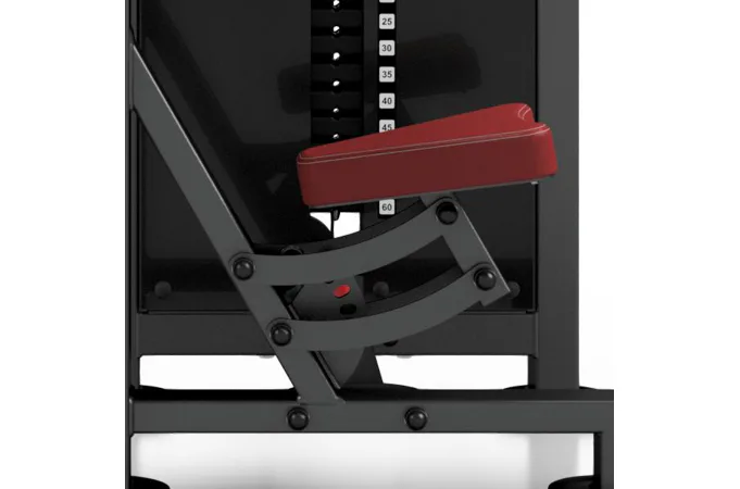 Sedadlo je možné nastaviť do štyroch polôh za použitia červeného, pružinového kolíka. Polstrovanie je zo syntetickej kože zošitej režnou niťou značky COATS vyplnené tvrdou penou, to celé je na 3 mm hrubej, oceľovej doske. Tichý chod zaisťuje zakrytovanie čiernym plastom, z prednej časti je kryt opatrený priehľadom pre ľahké nastavenie požadovaného počtu tehál. Stroj je navyše opatrený veľkou samolepkou, ktorá inštruuje cvičencov, aké cviky idú na stroji vykonávať a ktoré skupiny svalov daný cvik posilňuje.