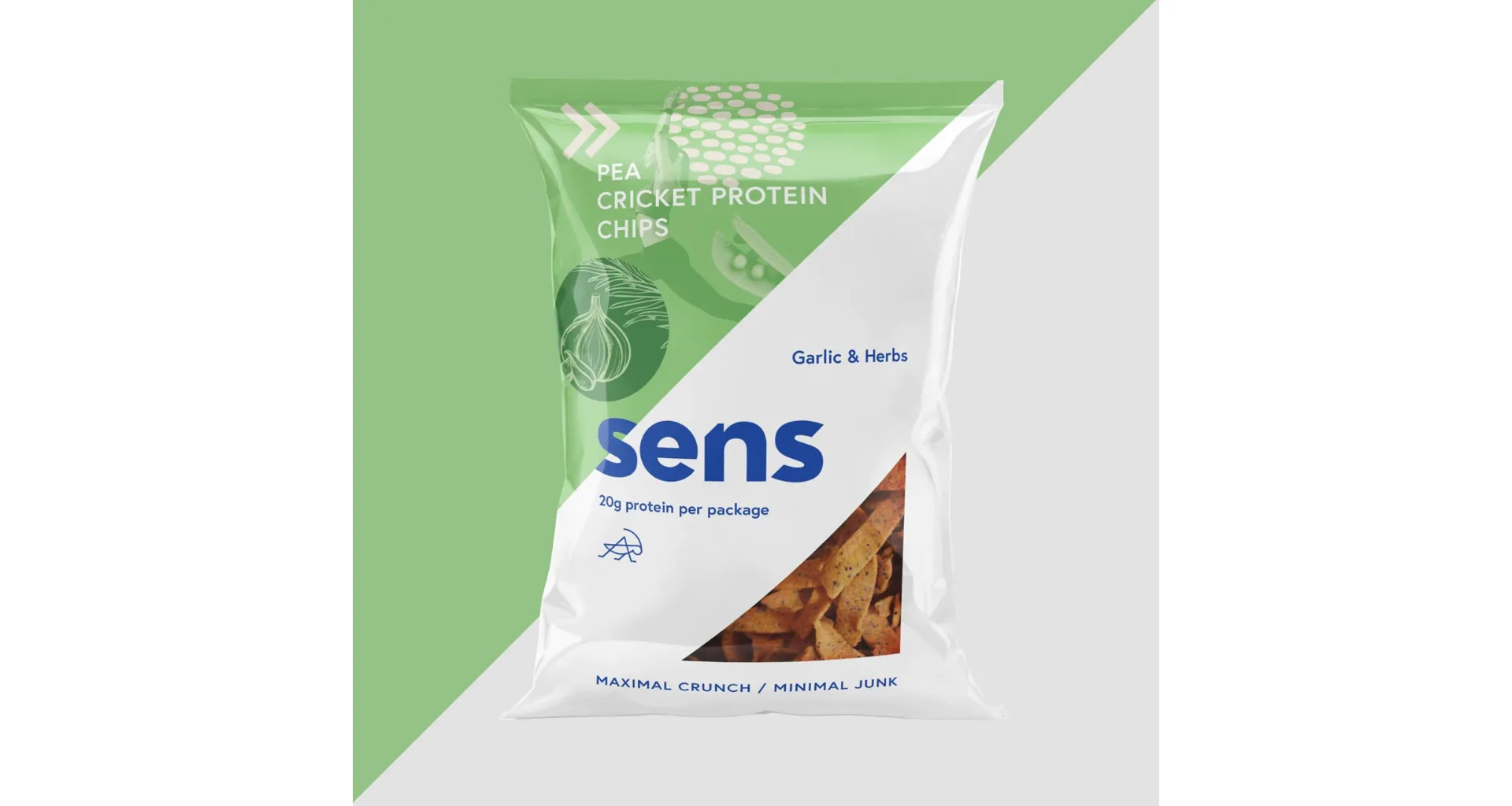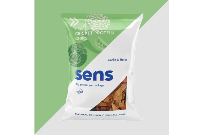 Zloženie proteínovej chipsy (Cesnak): Hrachová múka (75%), cvrččí múka (Acheta domesticus) (10%), cesnak (7%), slnečnicový olej, bylinky (3,2%) (medvedí cesnak, paprika, saturejka, bazal , korenie, oregano, tymián), zemiakový škrob, kvasničný extrakt., soľ.