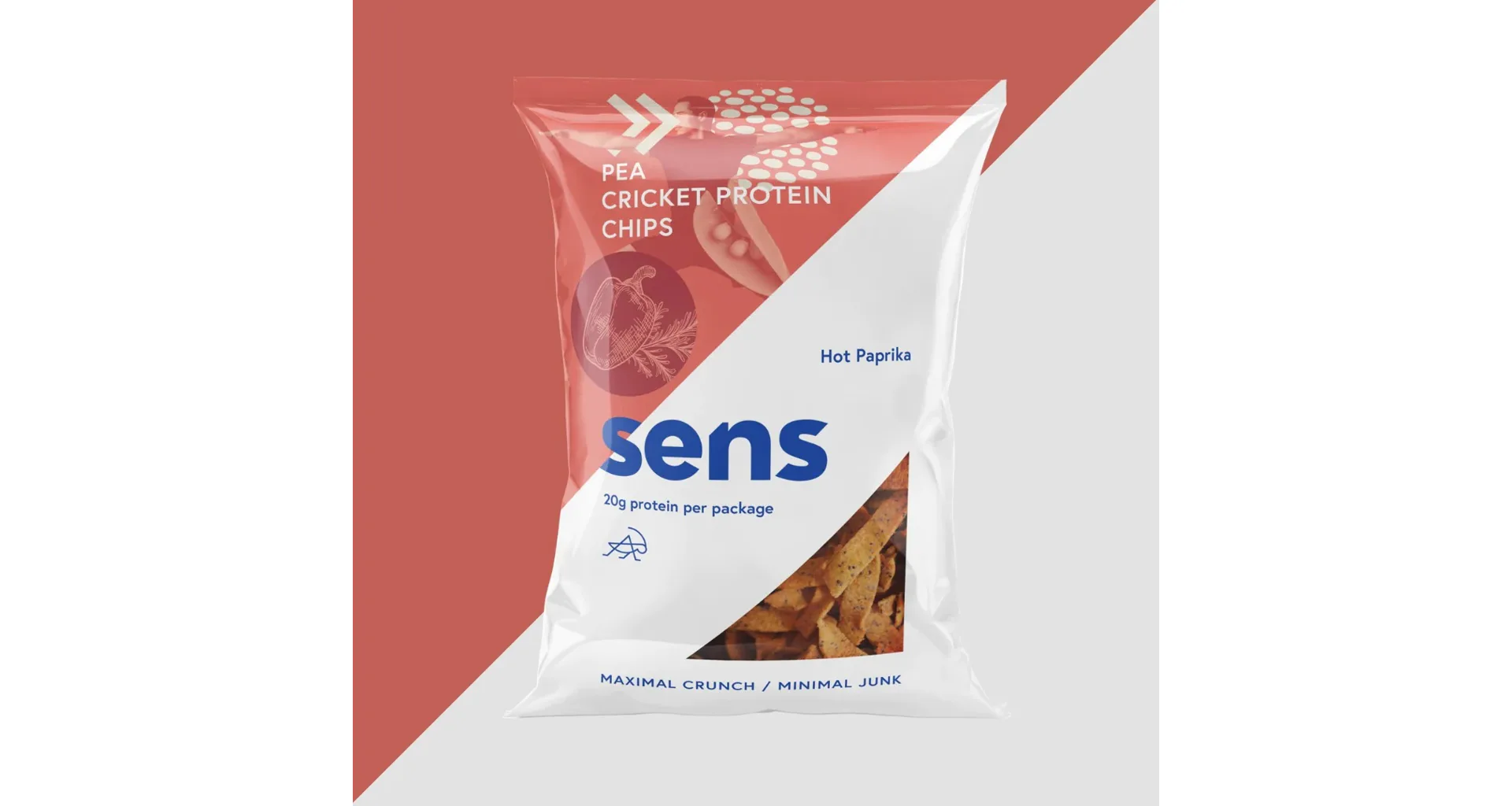 Zloženie proteínové chipsy (Horúca paprika): hrachová múka (75%), cvrččí múka (Acheta domesticus) (10%), chilli paprika (4,7%), slnečnicový olej, červená repa, saturejka, cesnak, bazal , tymián, zemiakový škrob, kvasničný extrakt, soľ.