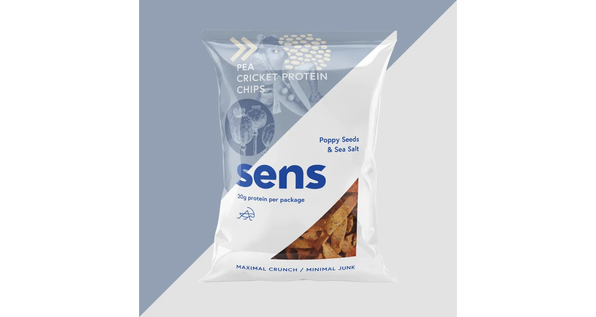 Zloženie proteínové chipsy (Makové semienka): hrachová múka (76%), cvrčia múka (Acheta domesticus) (10%), mak (7%), slnečnicový olej, kukuričná múka, morská soľ, karotka, cibuľa, kvasničný extrakt zmes korenia.