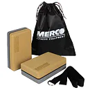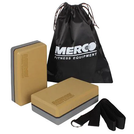 Yoga Max MERCO je praktická sada pre každého nadšenca do jógy či pilates. Sada sa skladá z dvoch kociek z EVA peny a jedného preťahovacieho pásu z bavlny. Dvojfarebné penové kostky majú rozmer 22,5 x 15 x 7,5 cm. Pás má dĺžku 180 cm, šírku 3,8 cm a je zakončený dvojitou chromovanou prackou, ktorá drží pás na požadovanej dĺžke.