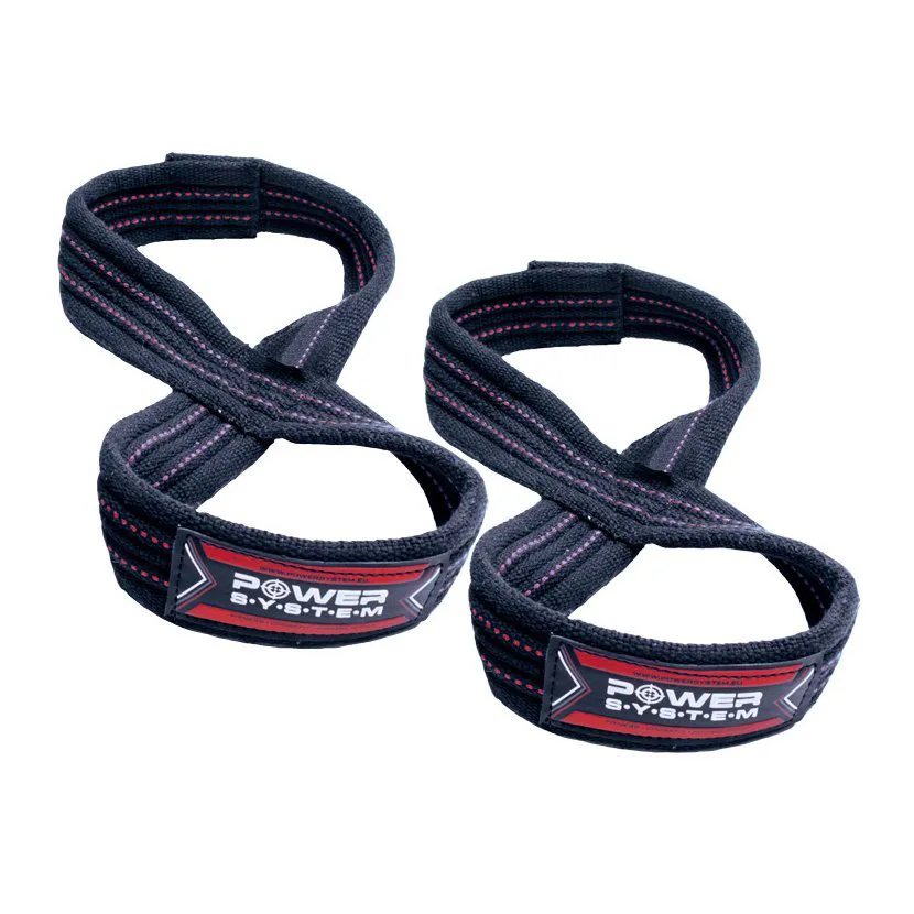 POWER SYSTEM Figure 8 čiže záťažový či silový popruh je podporná dvojslučka v tvare číslice 8. Popruhy sú navrhnuté tak, aby slučky boli obtiahnuté okolo osi a vaše zápästie bolo zafixované cez obe slučky. Tento úchop je pevnejší a určený pre každý typ osi. Prevlieka sa skrz oka za zápästie a spodným popruhom zaisťuje činku. Zápästie je tak lepšie spevnené a zároveň sa mu tak dostáva potrebnej úľavy, vďaka čomu sa môžete viac sústrediť na úchop činky a cvik samotný.