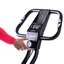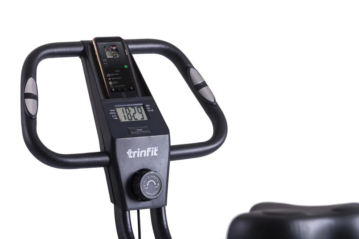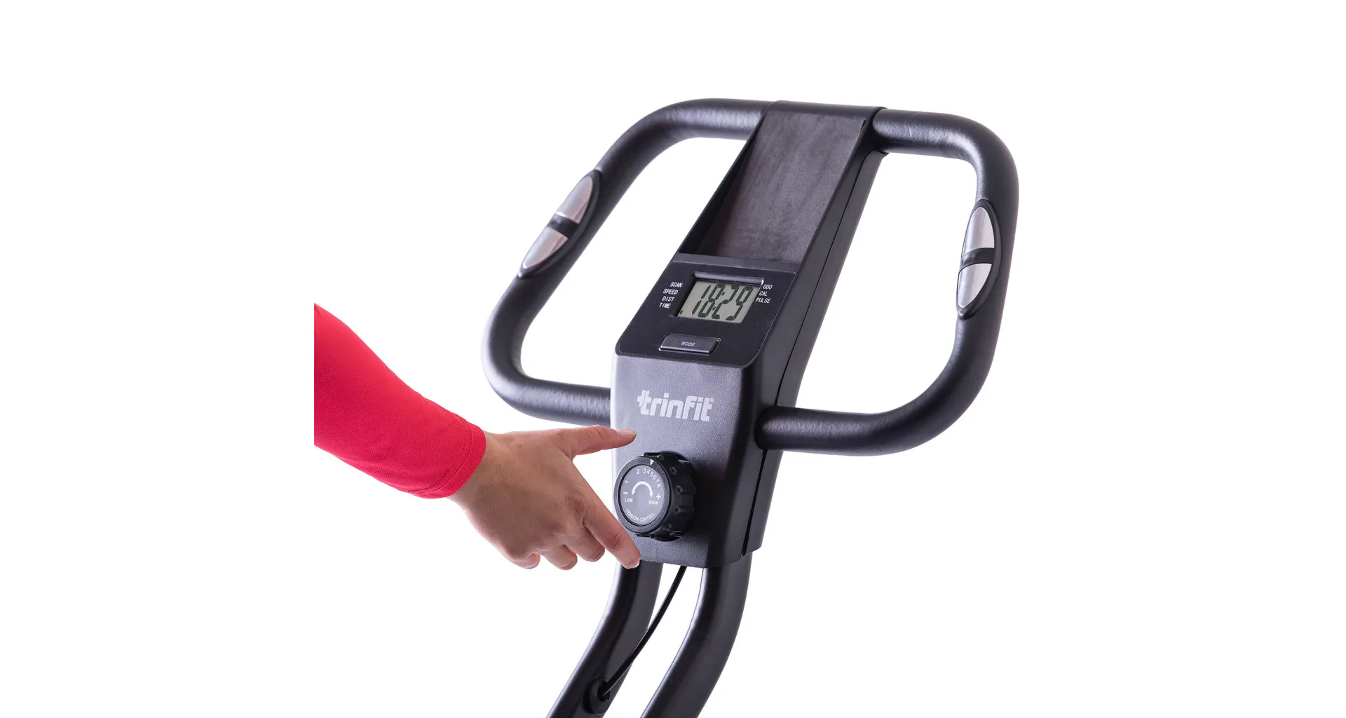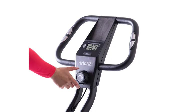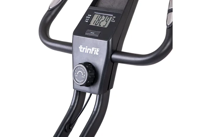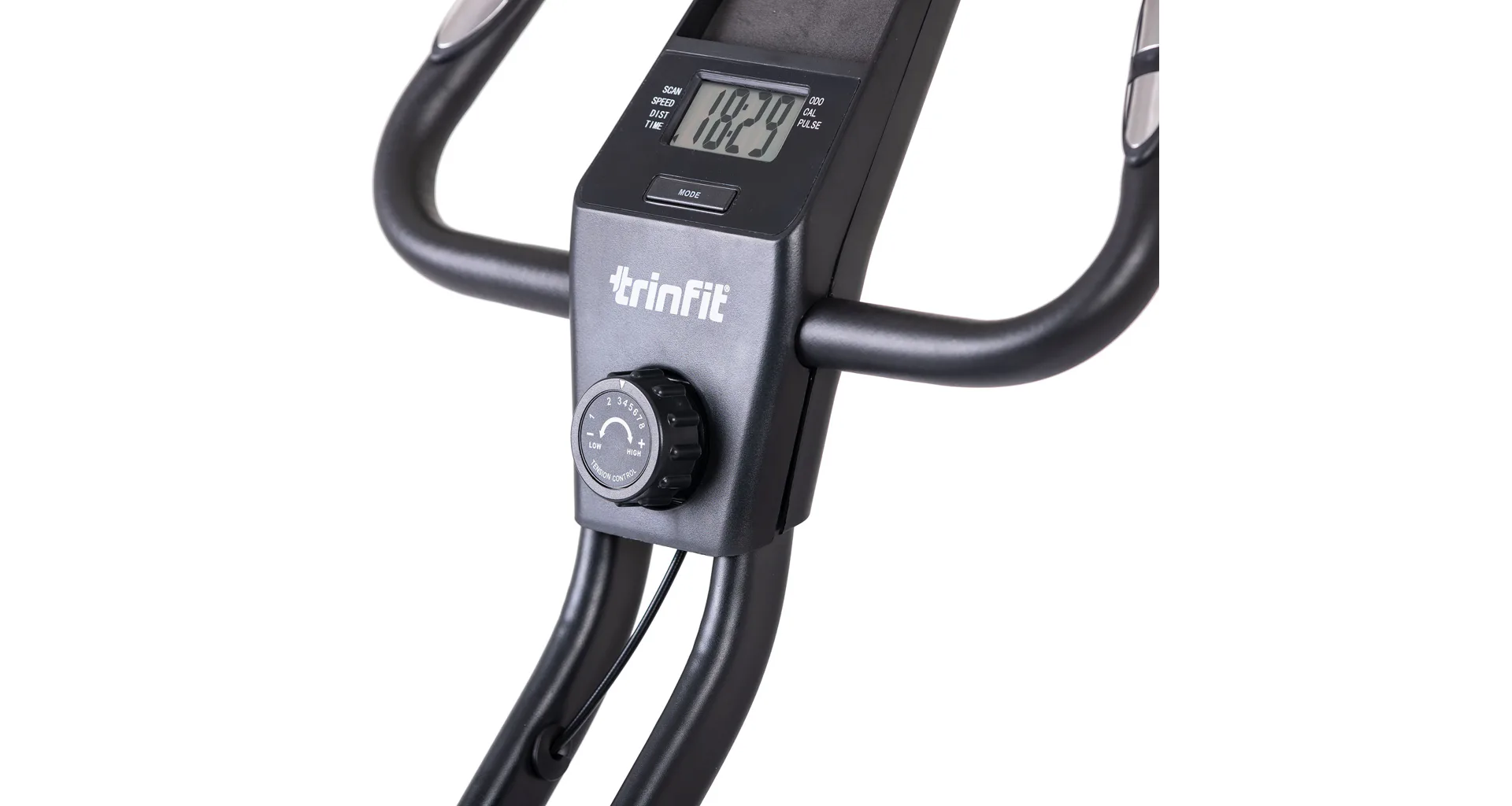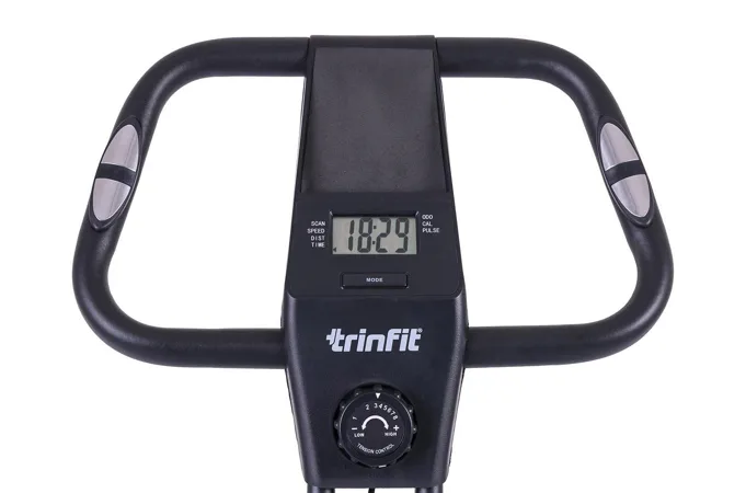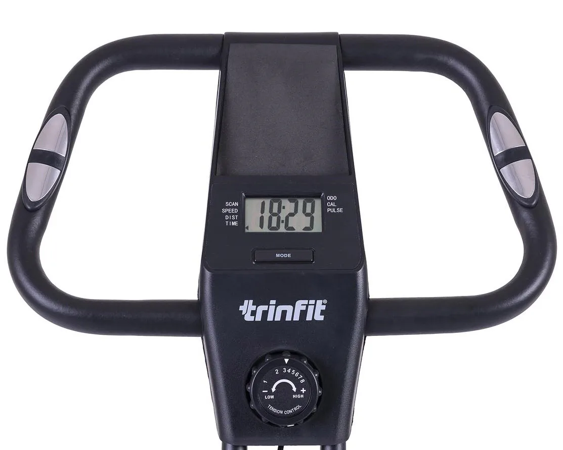TRINFIT Xbike Fold nabízí jednoduchý přehledný 3" LCD displej, který vám vyobrazí všechny základní hodnoty pro váš trénink. Umožní vám sledovat váš trénink v reálném čase pomocí dat monitorujících váš čas, vzdálenost, spálené kalorie a srdeční frekvenci. Pro maximální efektivitu tréninku můžete využít měření tepové frekvence skrz dlaňové snímače tepové frekvence (tzv. Hand pulse) na madlech trenažéru.