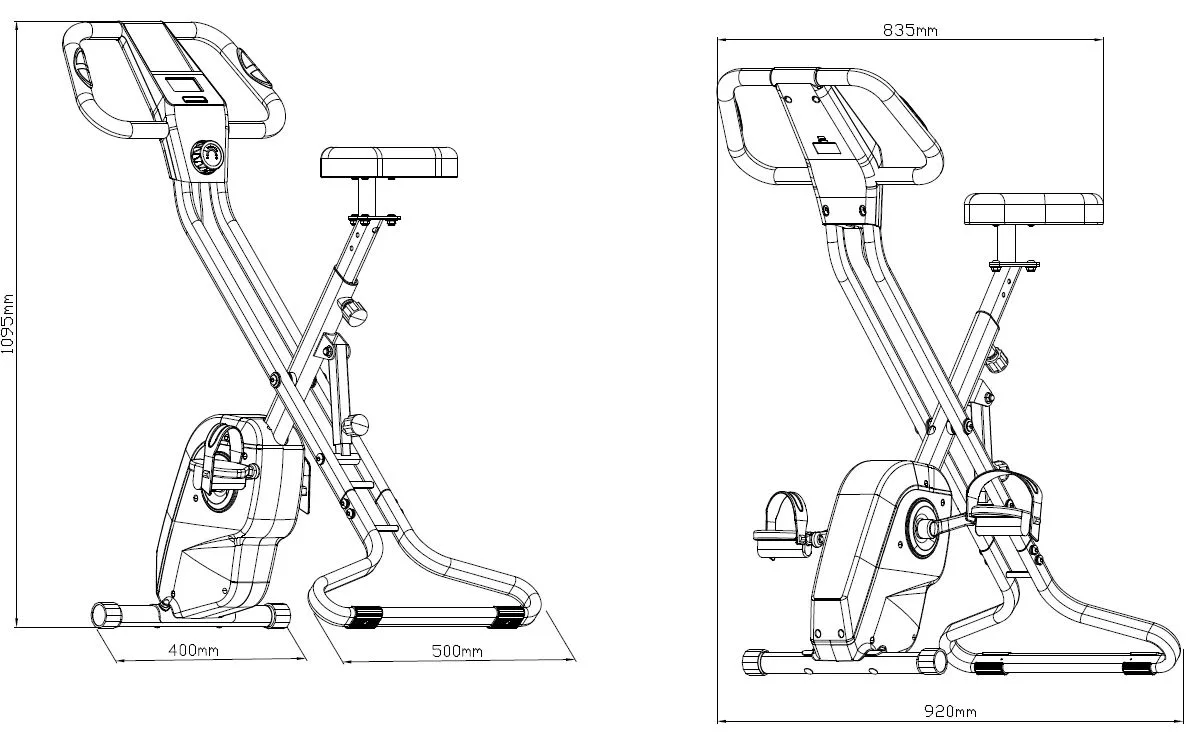 Po skončení tréninku můžete rotoped velmi snadno složit, aby vám doma nezabíral tolik prostoru. Složením ušetříte až 60% zabíraného prostoru.