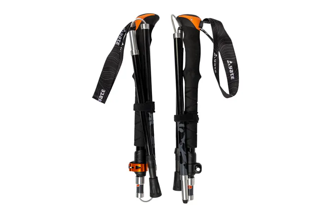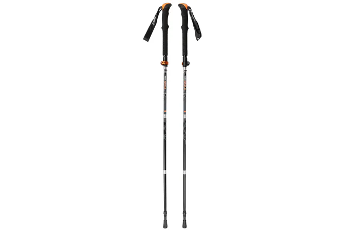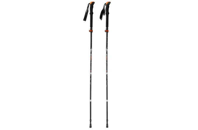 Moderné ultraľahké hliníkové skladacie palice s predĺženou rukoväťou. Vďaka skladaciemu systému s lankom sú palice rýchlo a pevne zostavené. Horný posuvný diel s upínačom SPEED LOCK slúži na nastavenie požadovanej dĺžky. Predĺžená penová rukoväť a nastaviteľné pútko z mäkkého popruhu je príjemné na úchop a nikde nedreje do ruky. Oceľové hroty. Palice sú dodávané v prepravnom obale spolu s dvoma tanieriky (veľký a malý) a kryty na hroty.