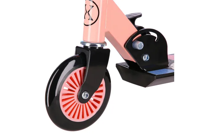 Riadidlá sú výškovo nastaviteľné do štyroch polôh (60 - 70 - 75 - 80 cm). Samotné gripy (rukoväte) sú penové pre istý úchop. Riadidlá je možné pre úsporu miesta zasunúť a sklopiť, správnu polohu riadidiel zaisťuje istiaci čap. Kolesá s priemerom 125 milimetrov a ložiská triedy ABEC 5 zaisťujú pohodovú jazdu. Kolesá sú bezdušové, polyuretánové.