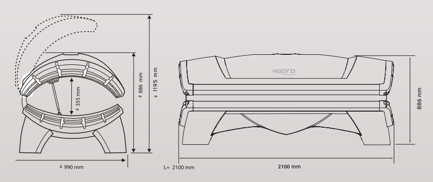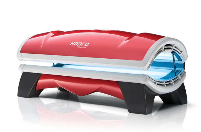 Tento model solária HAPRO Proline 28/1 C Lounge Red má atraktívny dizajn a je vyrobený z vysoko kvalitných materiálov, je určený ako pre komfortné domáce využitie, tak pre menšie komerčné priestory, ako relaxačná zóna pre zamestnancov firiem, pre kúpele a wellness. Solárium Proline má 28 opaľovacích žiariviek v priestrannom "slnečnom tuneli". Pre účinné opálenie je solárium osadené 28 výkonými trubicami a tvárovou výbojkou 400W.