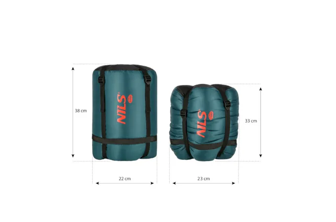 Spací vak je dodávaný v praktickom kompresnom obale s popruhmi, ktoré po stiahnutí ušetria približne 1/3 priestoru.