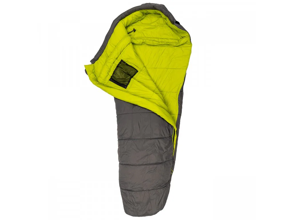 Zapínanie: Spacák je vybavený značkovým zipsom YKK so špeciálnym plastovým chráničom, ktorý zabraňuje vniknutiu látky do jazdca a samovoľnému rozopínaniu. Pri hlave je zips ešte zaistený chlopňou na suchý zips, ktorá zamedzuje samovoľnému otvoreniu zipsu.