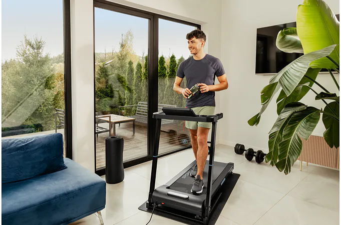 Bežecký pás ELIAS je ideálny pre osoby, ktoré hľadajú kompaktné riešenie pre domáci tréning. Je navrhnutý predovšetkým na chôdzu, ale umožňuje aj behanie pri rýchlostiach až 14 km/h. Funkcia Bluetooth, Body Fat programy a možnosť skladovania z neho robia praktického pomocníka na každodenný tréning.