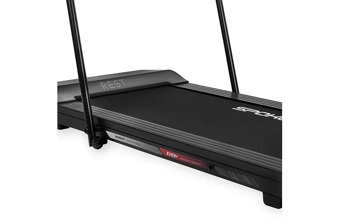 Prehľadná konzola s Bluetooth vám umožní priebežne kontrolovať parametre tréningu, ako sú čas, vzdialenosť, rýchlosť či kalórie. Zariadenie má systém tlmenia vibrácií S.A.S., ktorý eliminuje vibrácie prenášajúce sa do bežeckého pásu pri behu, čím zvyšuje komfort používania a znižuje záťaž kĺbov. Navyše je jeho prevádzka veľmi tichá, takže svojim tréningom nebude rušiť ani susedov. Pre väčšiu bezpečnosť má bežecký pás Spokey EVEN+ protišmykovú štruktúru pásu.
