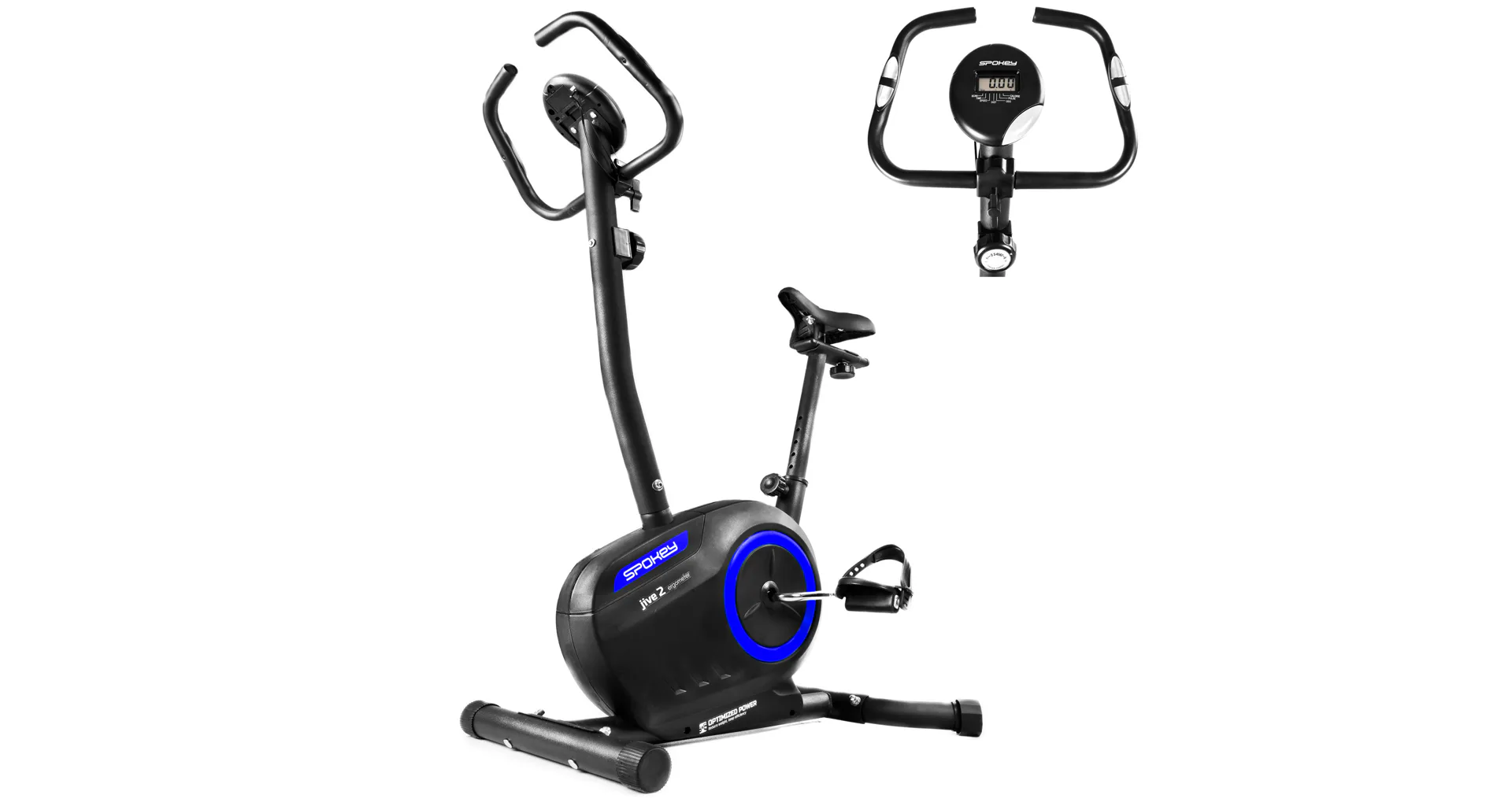 Tréningový bicykel Jive má na rukovätiach snímač tepovej frekvencie, ktorá vám umožní sledovať svoj výkon počas celého tréningu. Na displeji môžete okrem iného kontrolovať aj čas, prejdenú vzdialenosť, rýchlosť, či počet spálených kalórií. Pri modeli Spokey Jive je nastaviteľná výška sedadla, čo umožňuje nastaviť si čo najvhodnejšiu vzdialenosť od pedálov. Protišmyková štruktúra pedálov a upevňovacích pásikov zvyšujú bezpečnosť a pohodlie užívateľa počas jazdy na rotopéde.