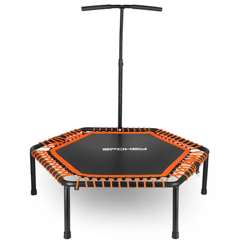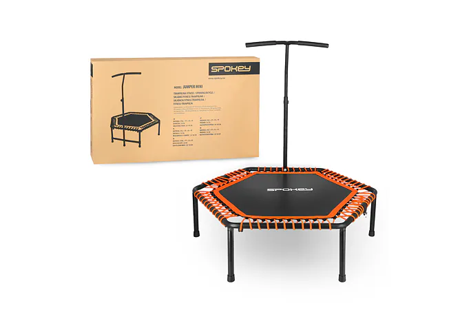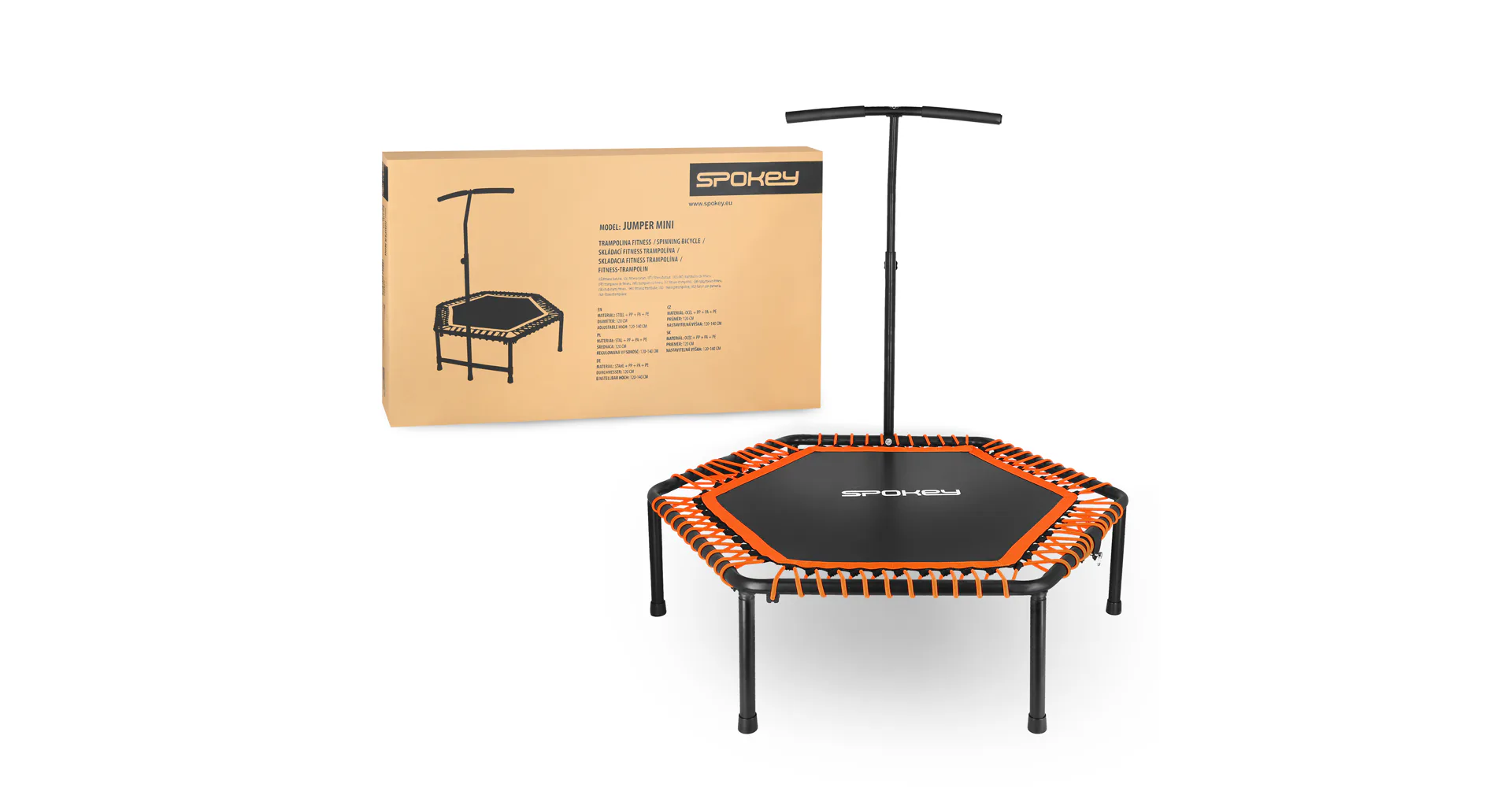 Spokey JUMPER MINI je veľmi stabilná fitness trampolína vyrobená z materiálov najvyššej kvality. Spĺňa všetky štandardy kvality, bezpečného a pohodlného používania. Na odolnom výplete môžete vykonávať tréningy pre posilnenie svalov zadku, brucha a nôh, rozvíjať motorickú koordináciu a zlepšovať fyzickú kondíciu. Veľkou výhodou trampolíny Spokey JUMPER MINI je nastaviteľná rukoväť, ktoré je možné nastaviť v rozmedzí od 120 do 140 cm. Rukoväť vám pomôže udržiavať rovnováhu počas cvičenia.