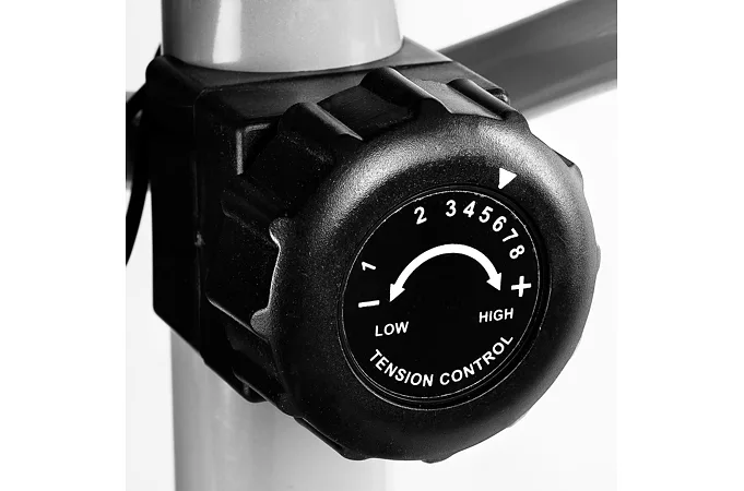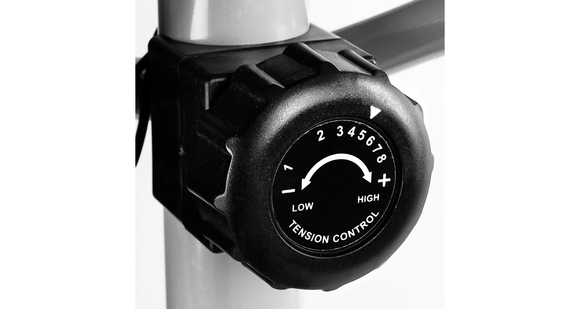 Vstavané transportné kolieska vám uľahčia premiestňovanie zariadenia na požadované miesto. Vďaka snímaču tepovej frekvencie zabudovanom v rukovätiach, môžete sledovať pulz počas celého tréningu na prehľadnom displeji a 8 stupňov regulácie vám umožní prispôsobiť odpor vašej aktuálnej kondícii alebo potrebám. Pre nastavenie odporu slúži koliesko, ktoré je umiestnené na ráme trenažéra. Hmotnosť zotrvačníka je 5 kg. Vysoká životnosť a výber použitých materiálov zaručí, že zariadenie budete môcť využívať mnoho rokov.