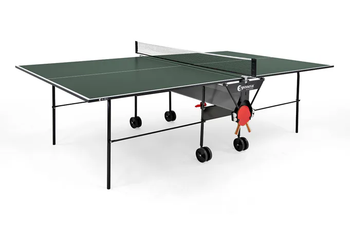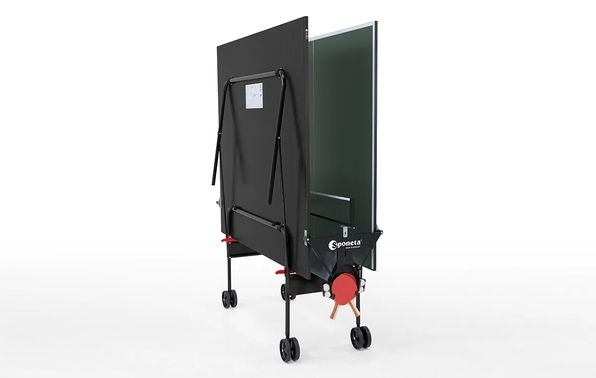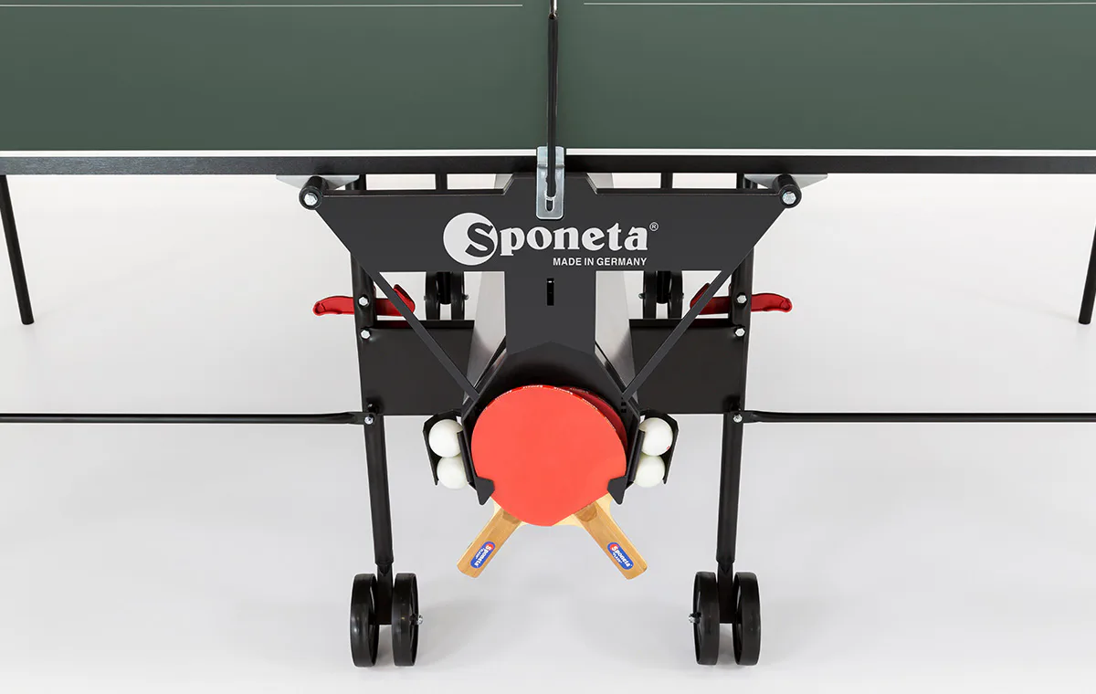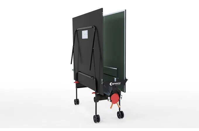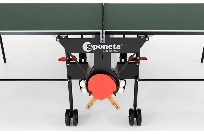 Stôl na stolný tenis Sponeta S1-12i s pojazdom, sieťkou, držiakom sieťky je súčasťou vybavenia stola. Stôl je tak kvalitný, že naň poskytujeme predĺženú záruku 3 roky. Rekreačný stôl s 19 mm hrubou doskou a kovovými výstuhami je určený na použitie v interiéri. Je v súlade s novou európskou bezpečnostnou normou. Predĺžená záruka na 36 mesiacov Hrubosť dosky - 19 mm Rozmery stola 274 x 152,5 x 76 cm v rozloženom stave, celková výška v zloženom stave na manipuláciu je 153 cm šírka (184 cm vrátane zachovaných držiakov na sieť) x 65 cm x 189 cm vrátane výšky koliesok. Stôl má hmotnosť 67 kg, balený v kartóne 71 kg, rozmery kartónu 157x140x9,5 cm. Dá sa ľahko zložiť bez toho, aby ste museli demontovať držiak siete so sieťou. Stôl je určený na rekreačné použitie. Stôl obsahuje držiak na pálky a loptičky. Dostupné v zelenej farbe. Pri objednávke sa účtuje prepravné vo výške 450,- Kč s DPH za stôl z dôvodu špeciálneho odberu pre nadrozmerné balíky.
