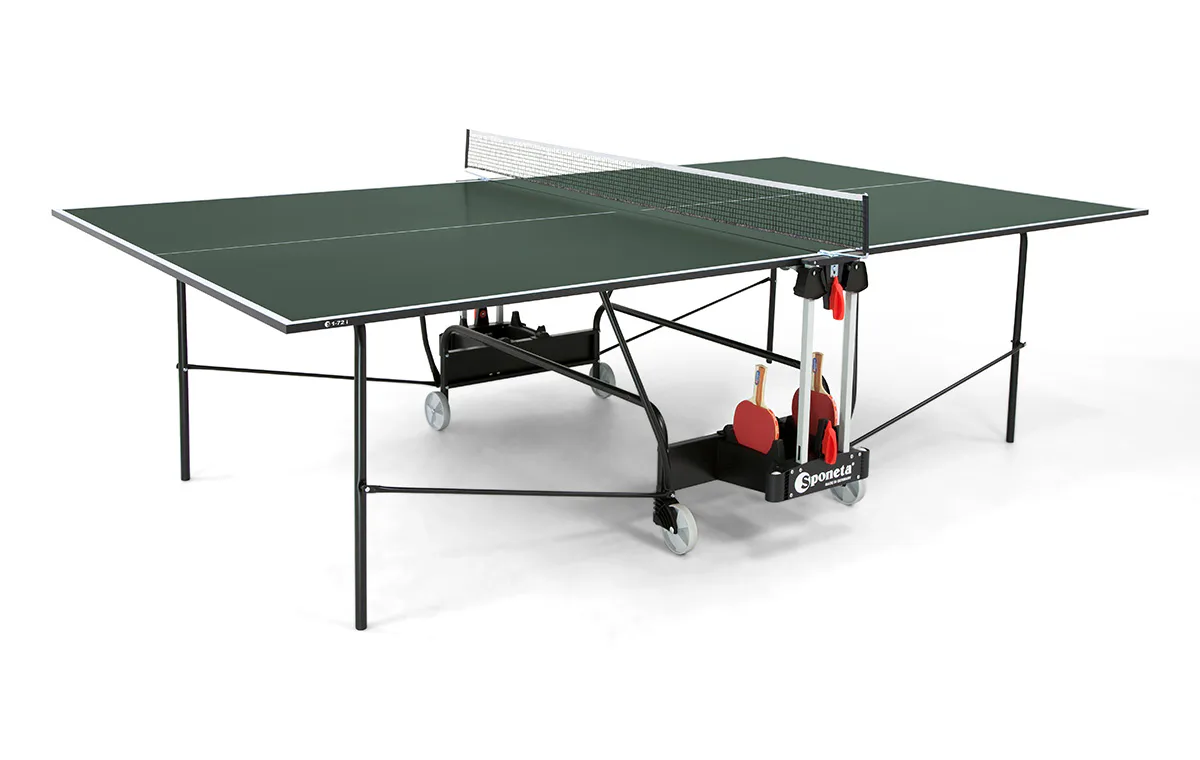 Stůl na stolní tenis SPONETA S1-72i pro vnitřní - interiérové použití (není odolný proti povětrnostním vlivům a UV záření) je propracovanějším nástupcem modelu SPONETA S1-12i - barva stolu zelená - stůl pro vnitřní použití - rozměr stolu 2740 x 1525 x 760 mm - dřevěná hrací deska 19 mm - ocelová konstrukce o průměru 25 mm - možnost pohybu stolu na 4 kolečkách o průměru 125 mm - složení umožňuje hru jednoho hráče - vyroben podle normy EN 14468-1 třída D - rozměr pro uskladnění 184 x 69 x 163 cm - stůl je vybaven držákem síťky a síťkou - držák pálek a míčků - hmotnost 67 kg - vyrobeno v Německu