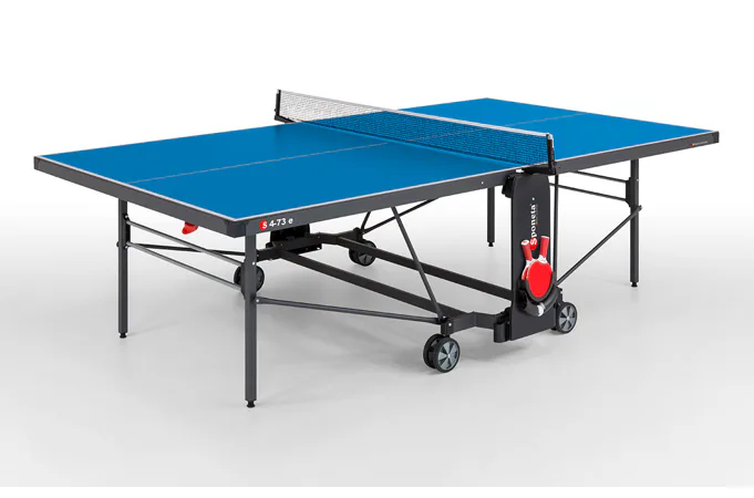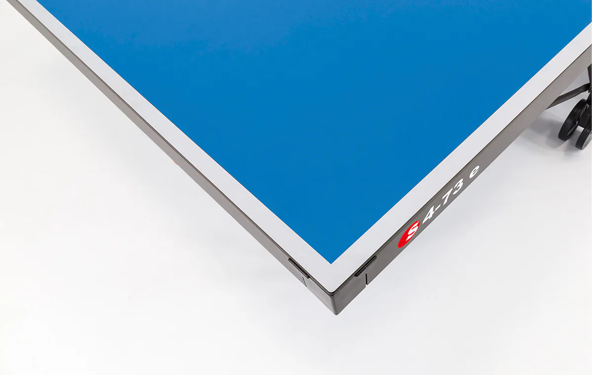 Stôl na stolný tenis SPONETA S4-72e je kvalitný stôl určený na športové účely, prípadne pre náročnejších rekreačných hráčov. Pozinkovaný rám spolu s 5 mm hrubou plastovou doskou z melamínu, ktorá má vlastnosti klasickej drevenej dosky, umožňujú stále umiestnenie stola vonku (napriek tomu odporúčame pre predĺženie životnosti nechávať stôl vonku iba od jari do jesene - sneh a ľad môžu stôl mechanicky poškodiť) bez ohľadu na momentálne klimatické podmienky. Doska je navyše ešte vystužená oceľovým rámom 50 mm, ktorý stôl ešte ďalej spevňuje.