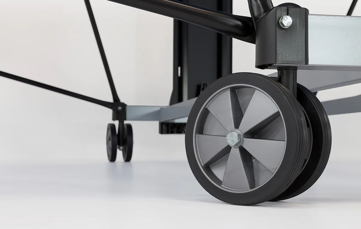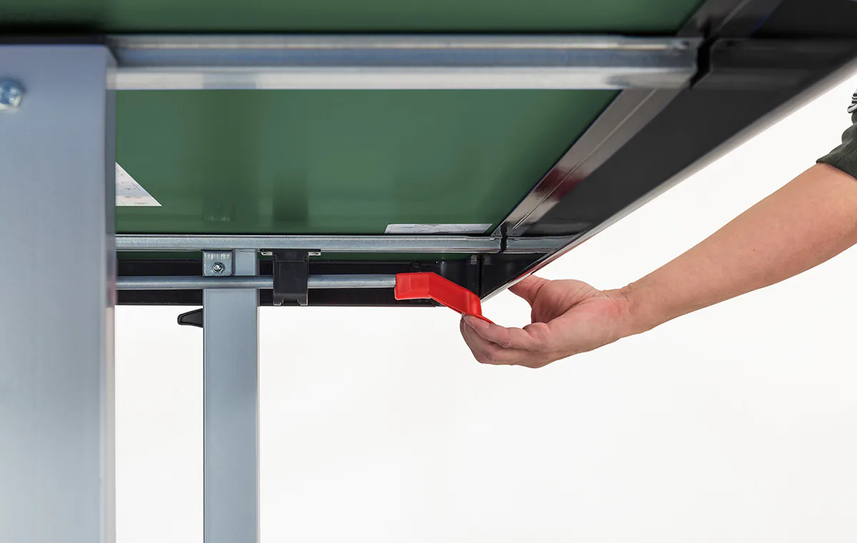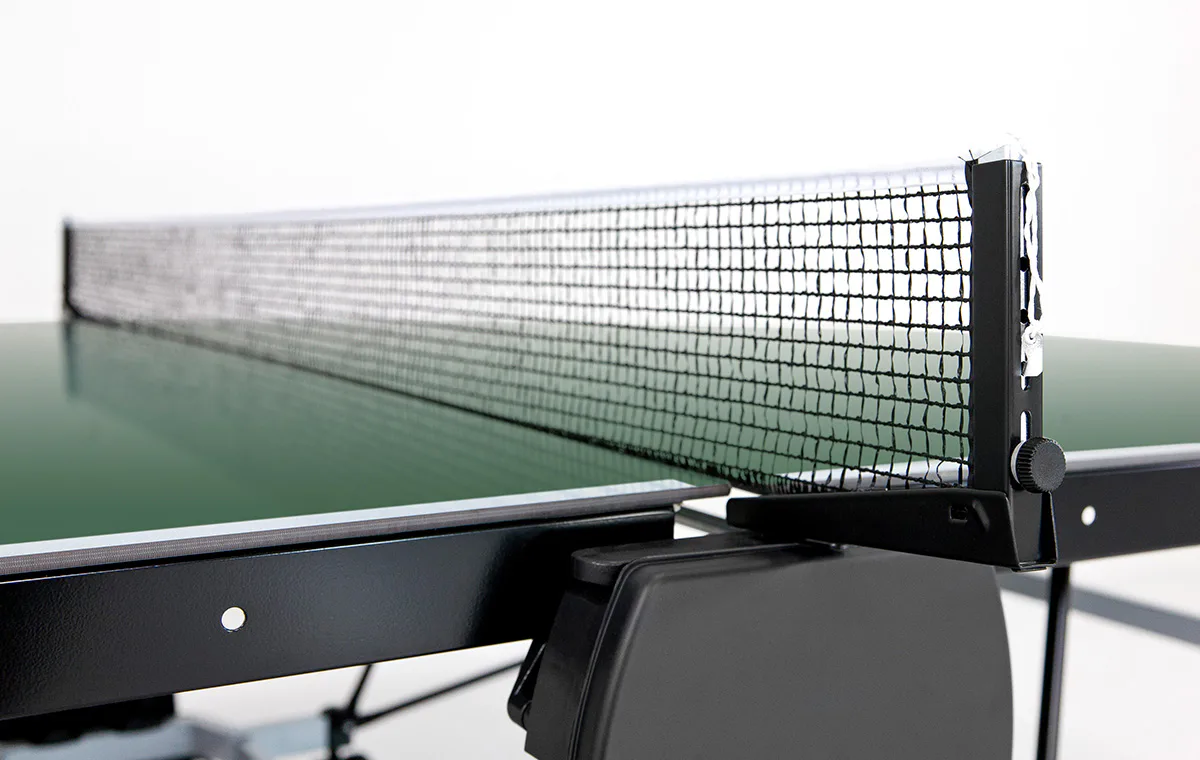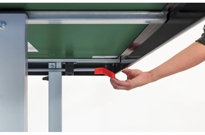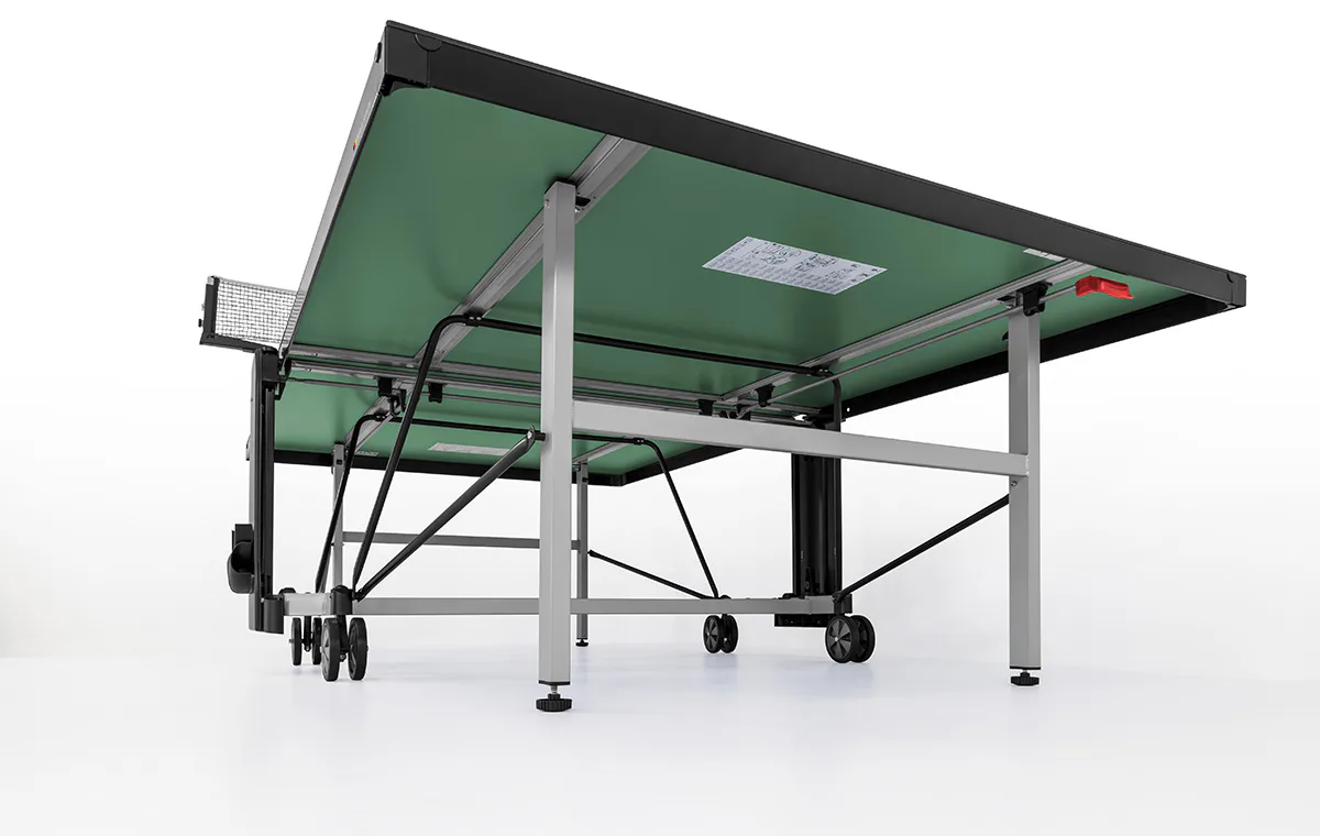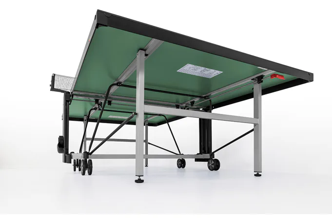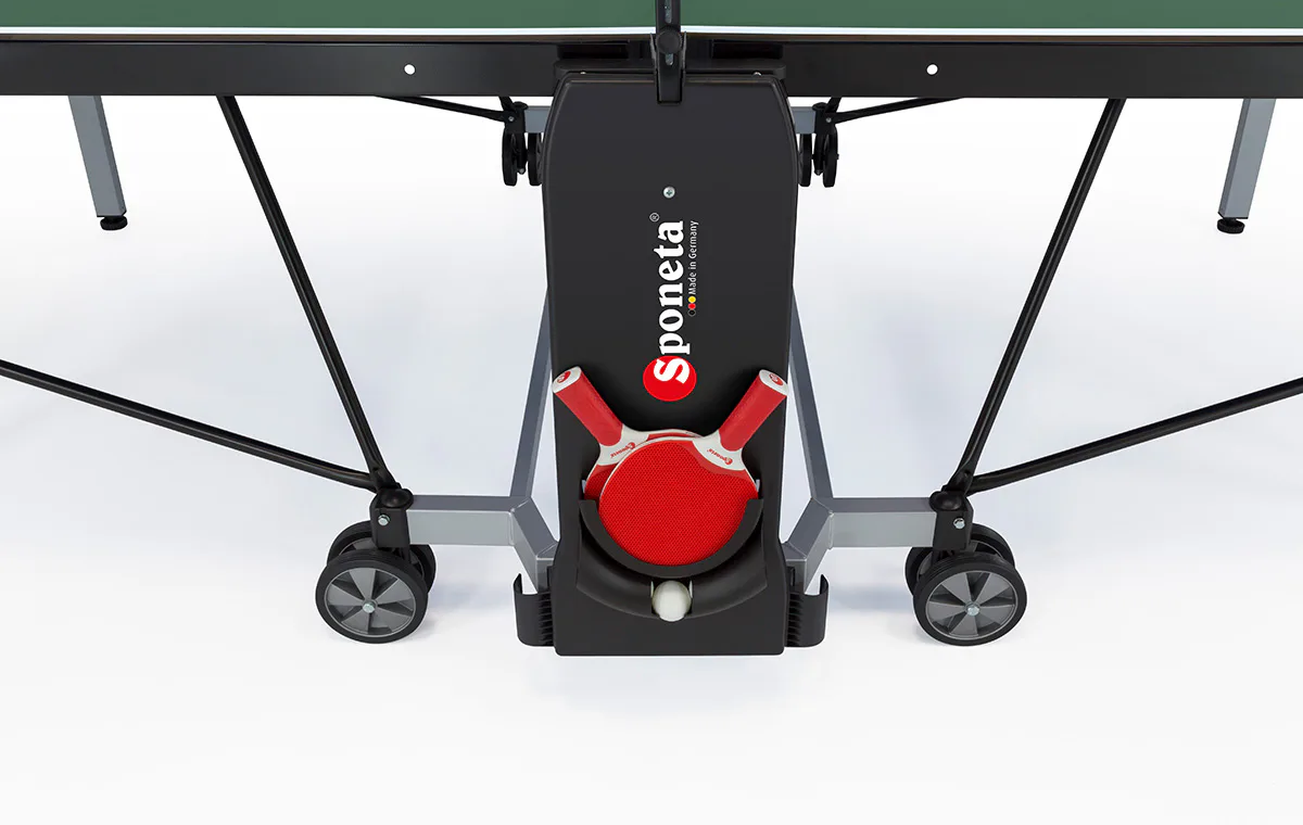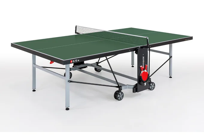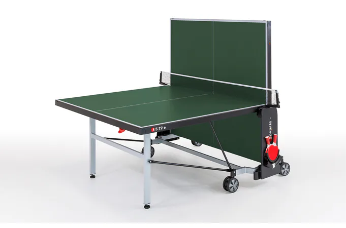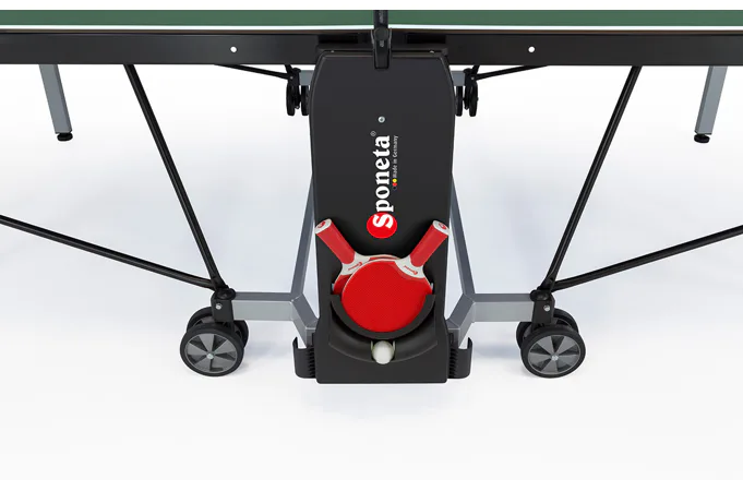 Stůl na stolní tenis SPONETA S5-72e pro venkovní - exteriérové použití (odolný proti povětrnostním vlivům a UV záření). - barva stolu zelená - stůl pro venkovní použití - rozměr stolu 2740 x 1525 x 760 mm - hrací deska 6 mm melamin - okrajový lub 50 mm - tyče nohou 50 x 30 mm - možnost pohybu stolu na 4 dvojitých gumových kolečkách o průměru 128 mm - složení umožňuje hru jednoho hráče - vyroben podle normy EN 14468-1 třída B - rozměr pro uskladnění 153 x 70 x 155 cm - stůl je vybaven držákem síťky a síťkou - držák míčků - hmotnost 74 kg - vyrobeno v Německu