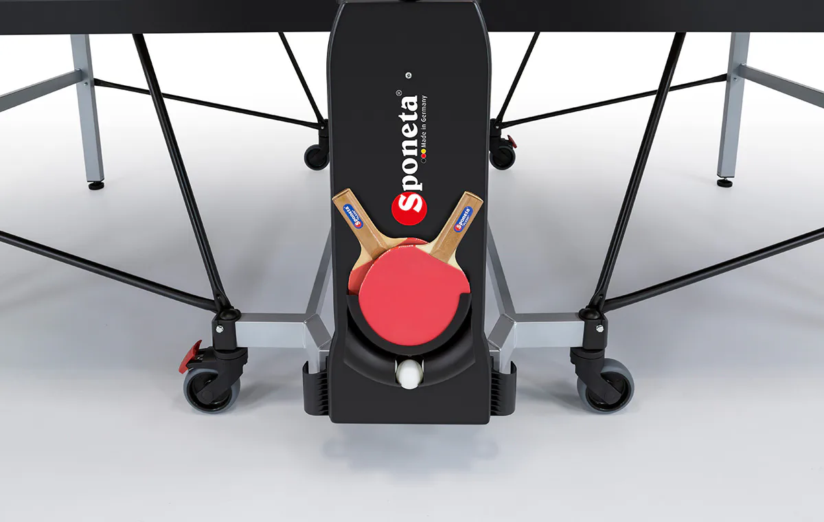 Stůl SPONETA S5-73i odolná proti povětrnostním vlivům a UV zážení, proto není vhodný do venkovního prostředí. Stůl jde velmi pohodlně přesouvat díky 4 gumovým kolečkům, kdy 2 kolečka jdou, pro lepší stabilitu stolu, zabrzdit. Složení stolu umožnuje hru pro jednoho hráče a zároveň možnost lepšího uskladnění.