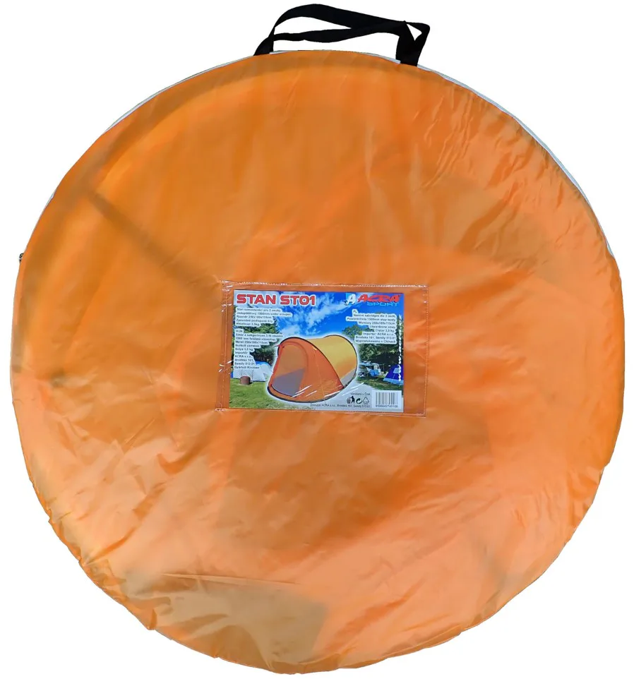 Samostavací stan má spevnené a podlepené švy, ktoré bránia preniknutiu vody, impregnácia je 1500 mm vodného stĺpca, hmotnosť stanu je 3,5 kg. Zbalený stan zaberie minimum priestoru. Stan stačí vybrať z obalu, hodiť na zem a on sa sám postaví vďaka pružným sklolaminátovým nosným prútom. Pri stane je pribalené návod s postupom na skladanie a rozkladanie stanu. Rozmer na prepravu 90 x 90 x 3 cm.