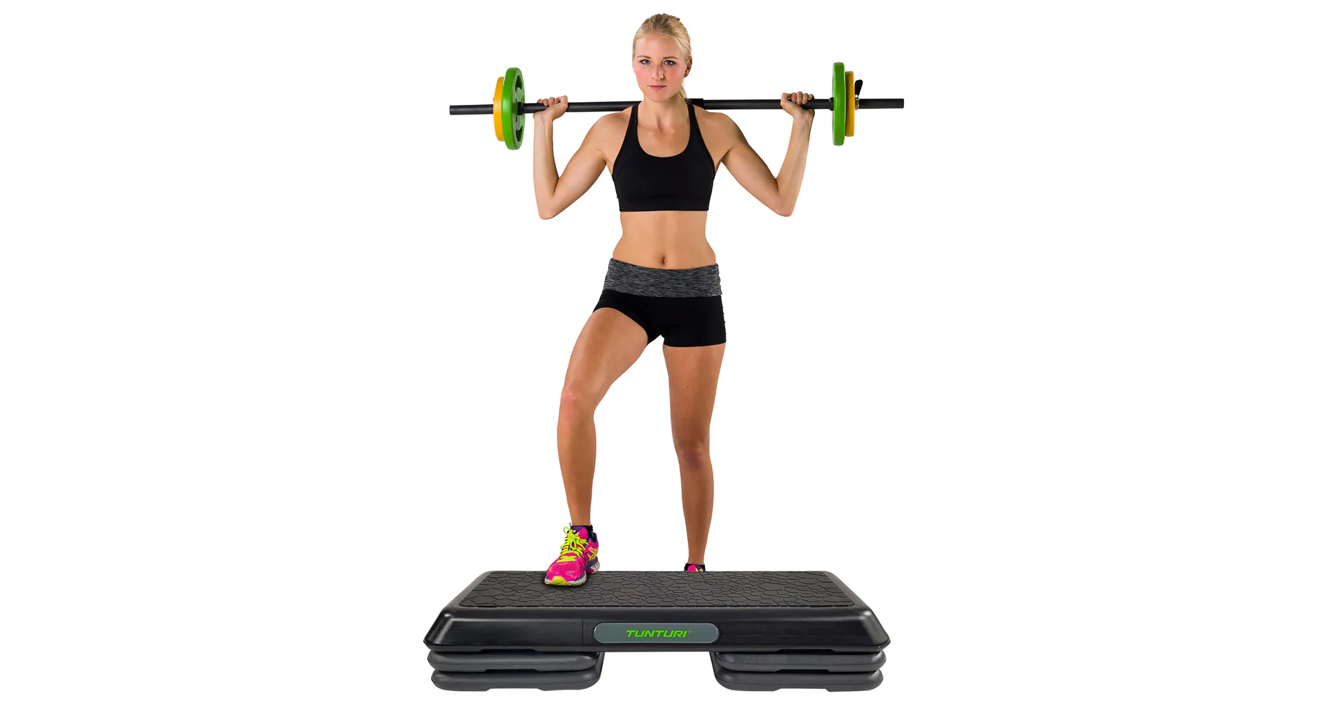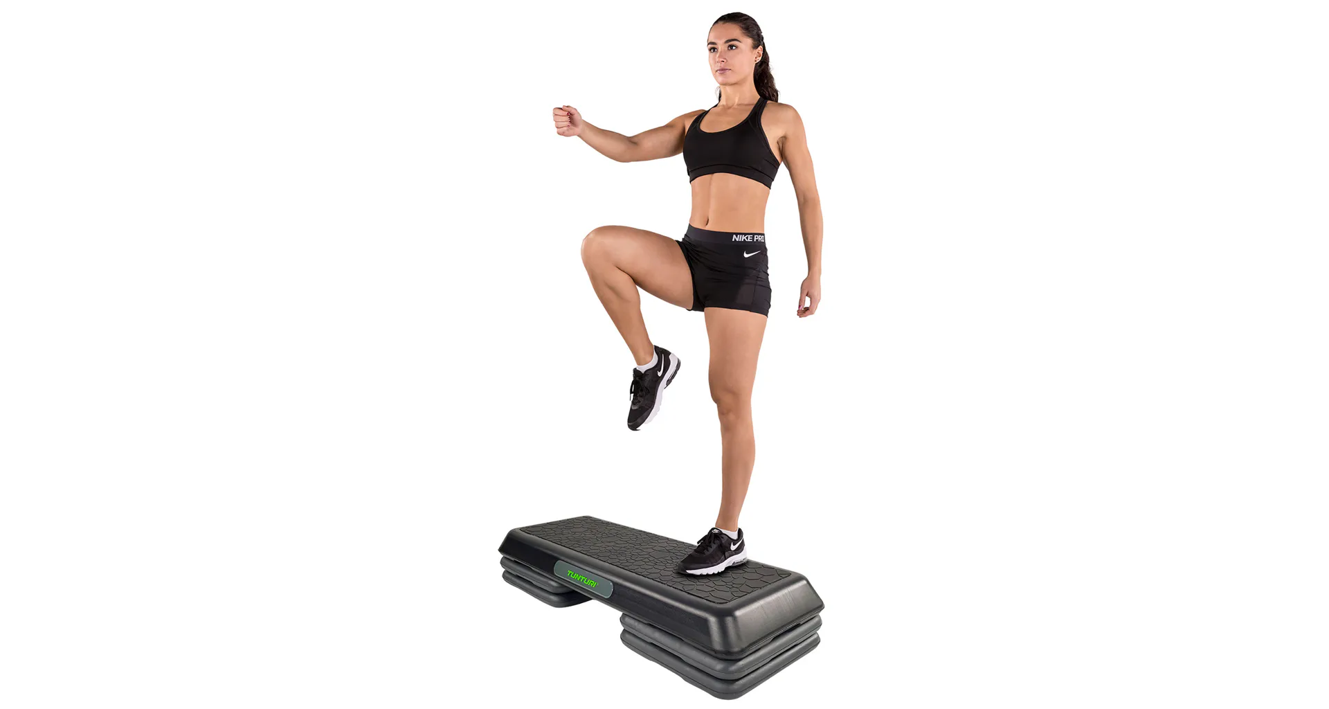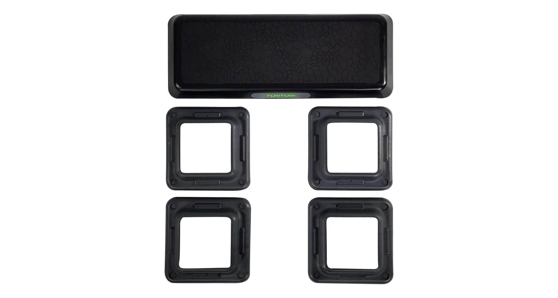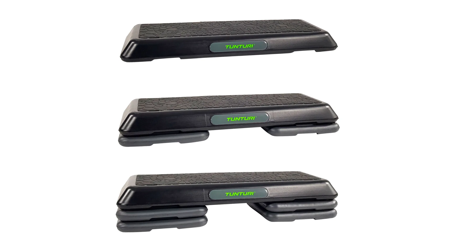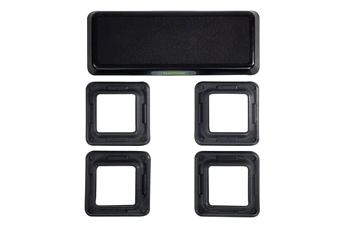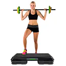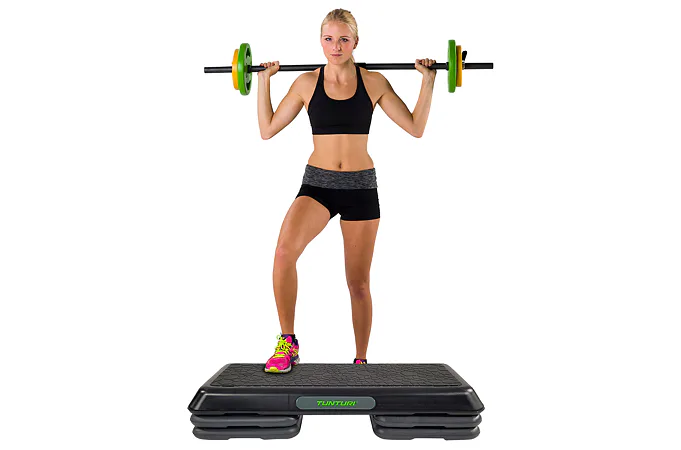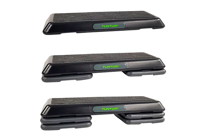 Step na aerobic TUNTURI Aerobic Power Step je nastaviteľný mostík pre aerobic aj ďalšie cvičenia. Možnosť nastavenia ich do troch výšok: 10/15/20 cm. Vďaka tomu si môžete určiť obtiažnosť cvičenia. Zmenu výšky možno vykonať ľahko za pomoci dodávaných nastavovacích blokov. Veľkosť stepu je 108 x 41 cm, a preto je vhodný nielen na aerobikové kroky, ale aj pre pohodlné vykonávanie strečingových cvikov alebo posilňovanie ľahu zamerané na svaly nôh, brucha a zadku.