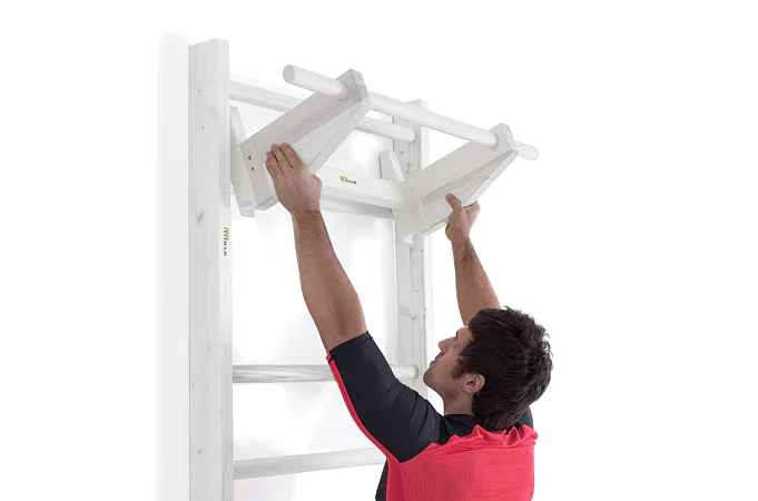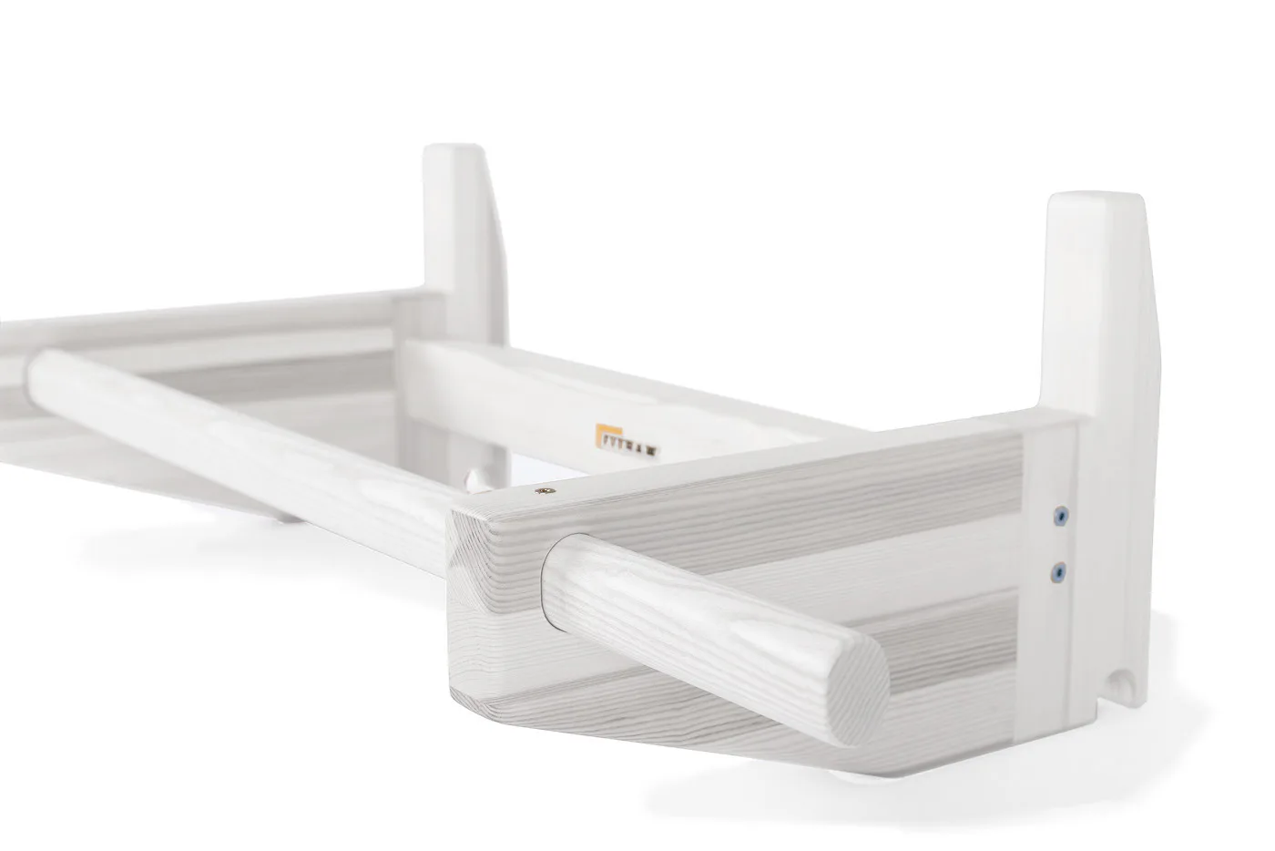 FITHAM Drevená závesná hrazda LUX biela je určená na zavesenie na drevenú ribstol LUX šírky 80 a 90 cm s oválnymi priečkami z našej ponuky. Drevená hrazda môže slúžiť ako na vyvesenie, tak aj klasické posilňovacie cvičenia. Hrazda je určená na domáce využitie a je vhodná pri požiadavke na dizajnovú jednotnosť s ribstolou. Hrazda je bielo lakovaná.