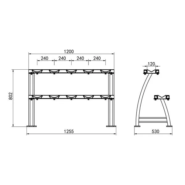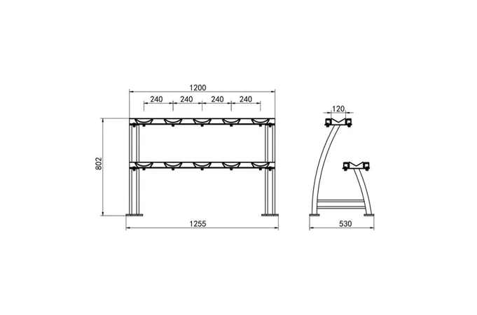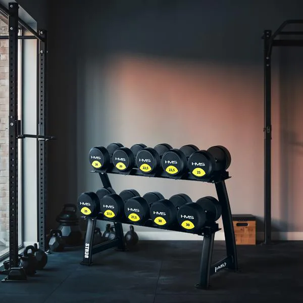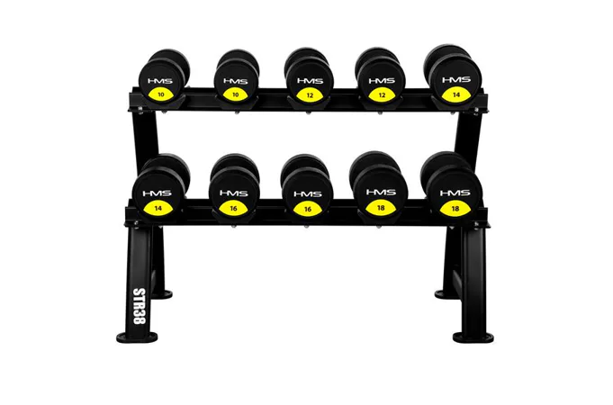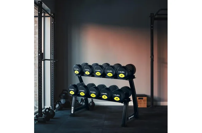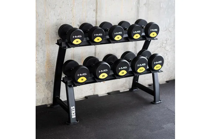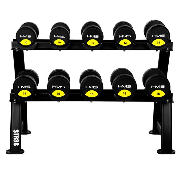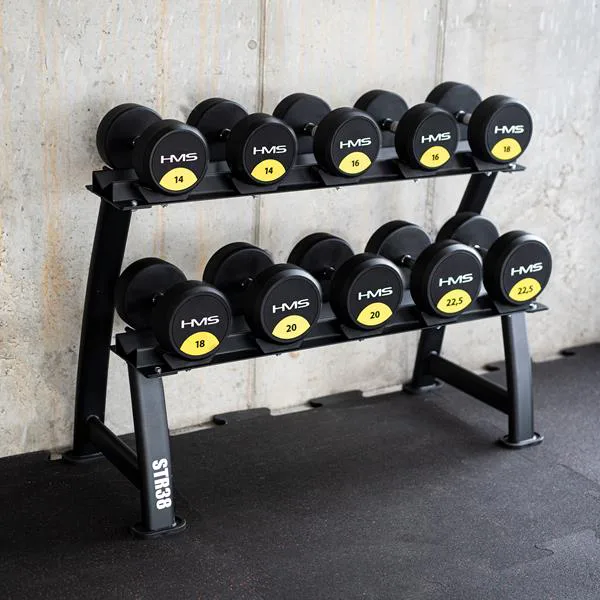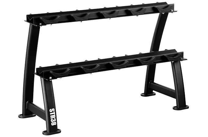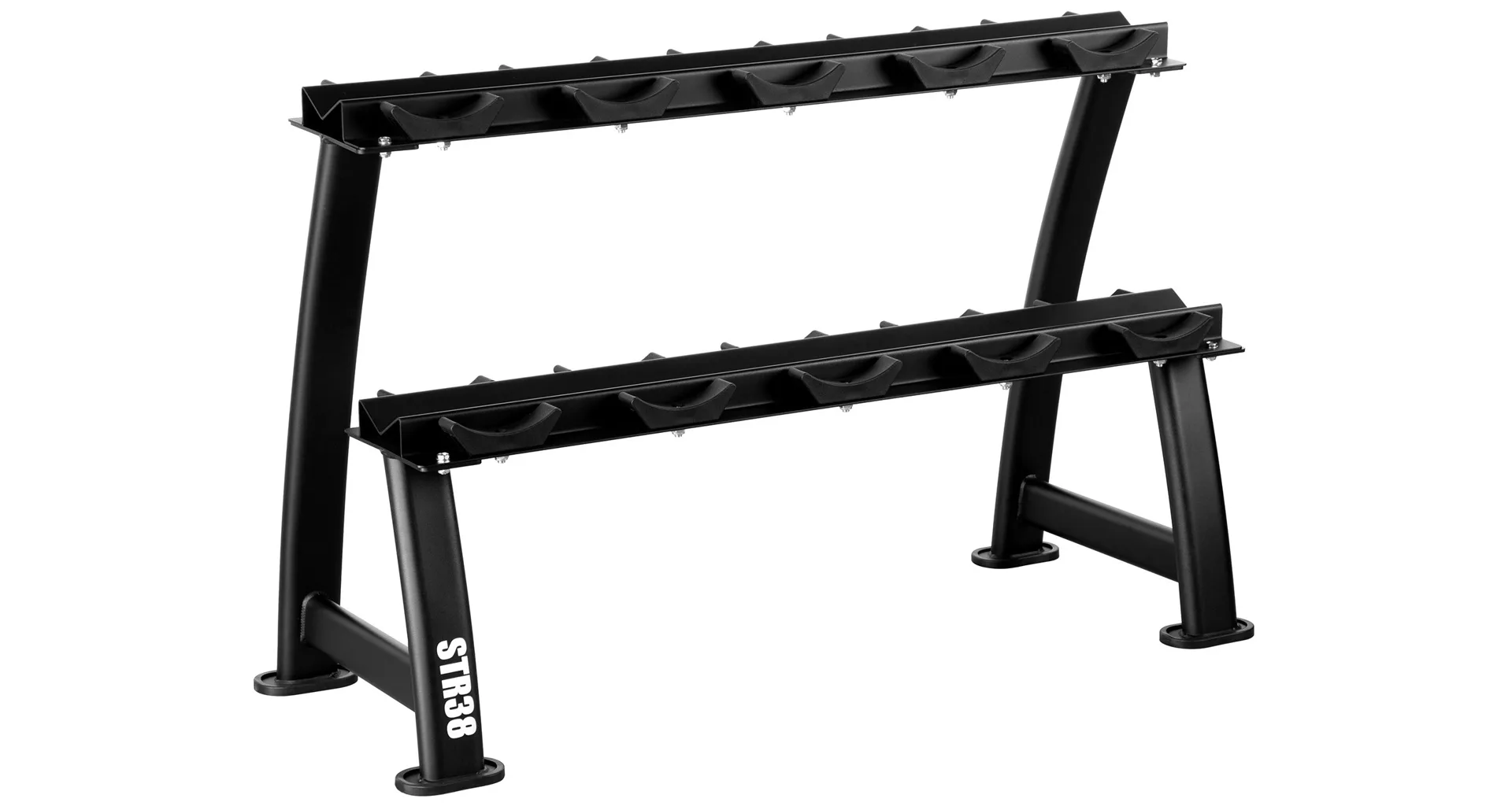 STR38 je robustný a funkčný dvojúrovňový stojan na činky, ktorý umožňuje prehľadne uložiť až 300 kg závažia. Vďaka širokej, stabilnej konštrukcii a premyslenej ergonómii zaručuje maximálne pohodlie a bezpečnosť pri používaní zariadenia.
