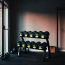 Dve úrovne - viac miesta, viac pohodlia — Stojan STR38 ponúka dve úrovne na uloženie až 10 párov činiek. Vďaka mierne naklonenému povrchu je úchop činiek pohodlný a nevyžaduje nadmerné ohnutie zápästia, čo znižuje záťaž kĺbov a zvyšuje pohodlie.