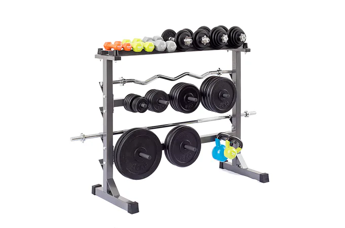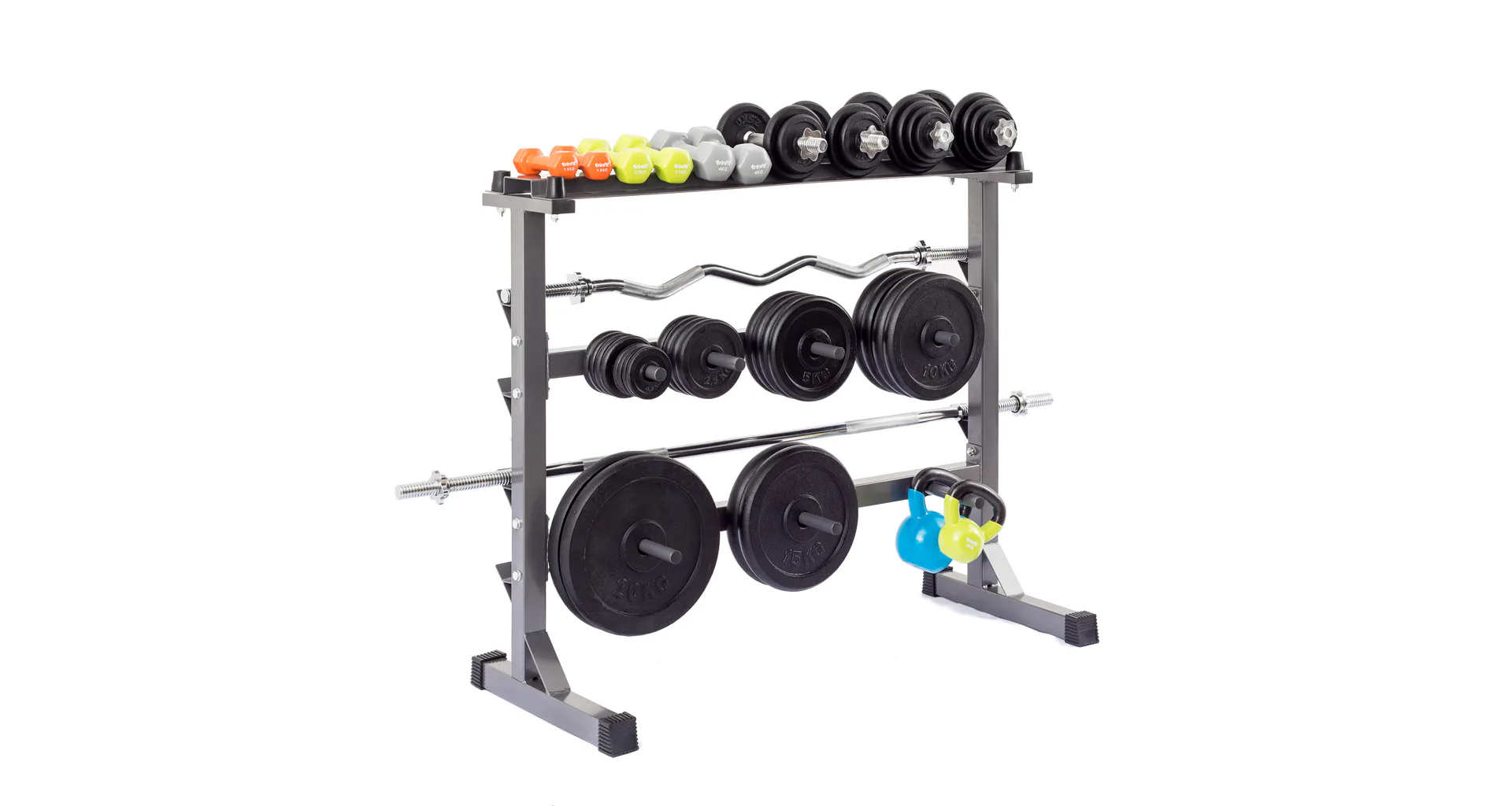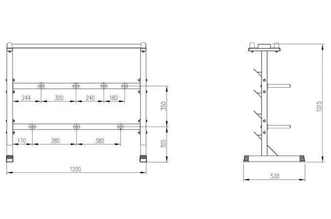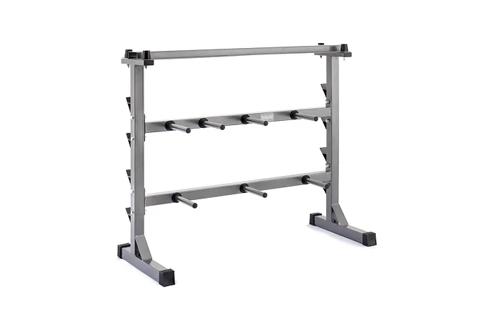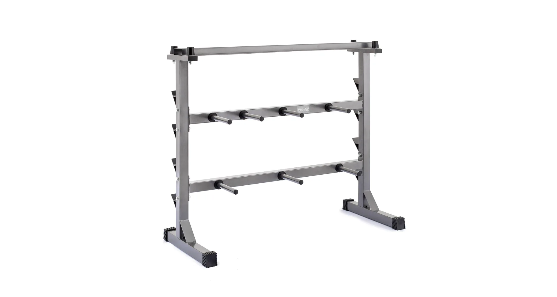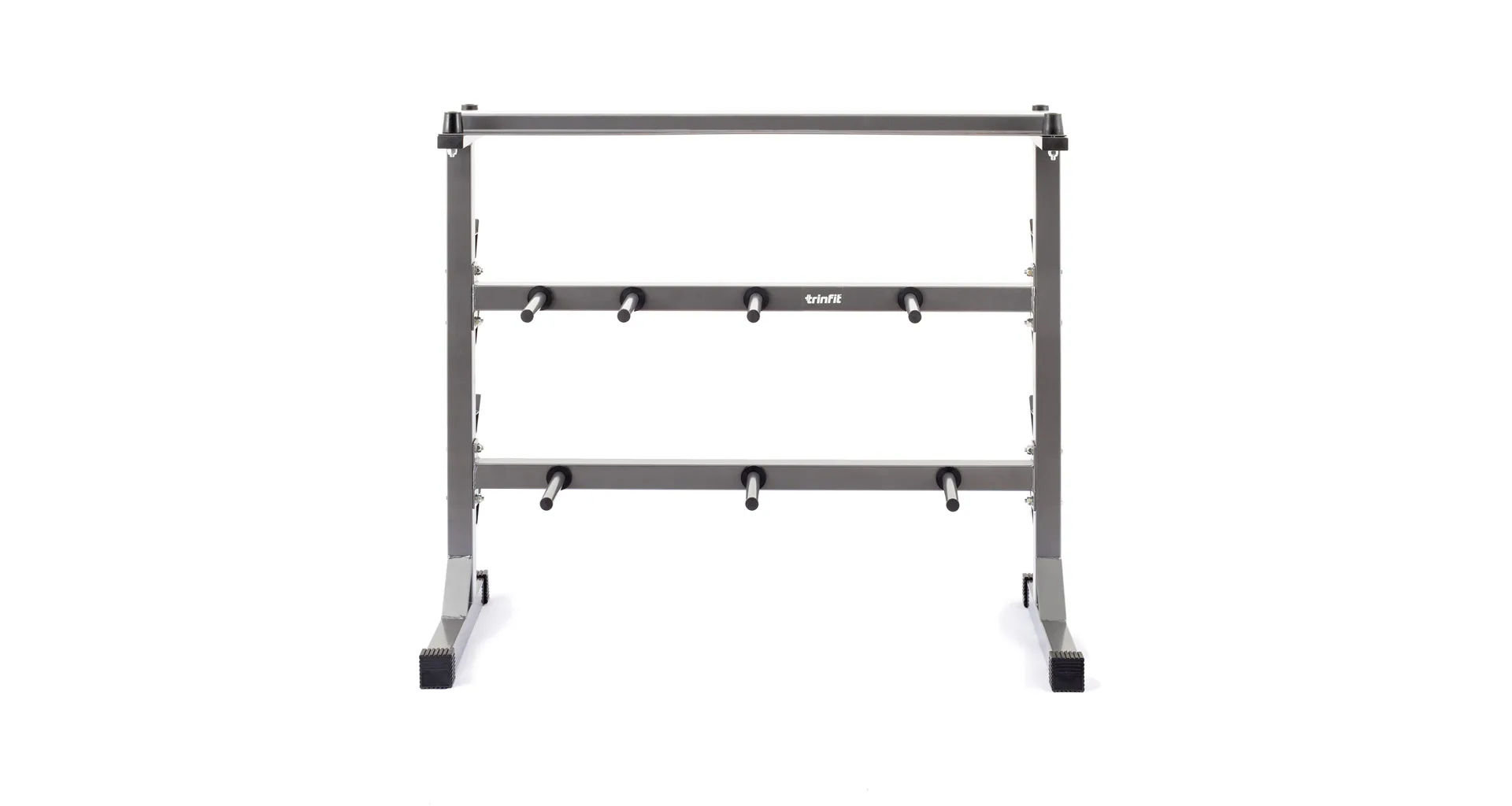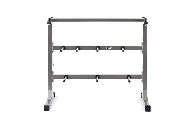 Odkládací stojan na činky, kotúče a osi TRINFIT DUMBBELL RACK je dokonalým riešením pre uloženie vašich činiek. Stojan umožňuje bezpečné uloženie jednoručných činiek, kotúčov a veľkých činkových os. Masívna rámová konštrukcia z jeklu 50 x 50 x 1,5 mm a kvalitná povrchová úprava vypalovaným lakom sú zárukou dlhej životnosti stojanu. Vďaka kvalitnému spracovaniu a materiálom, je možné stojan využiť v domácom aj komerčnom prostredí.