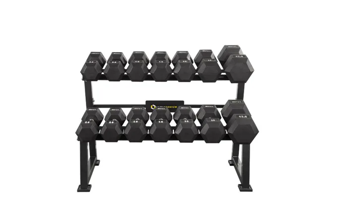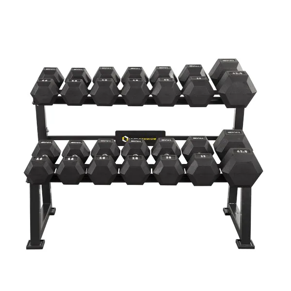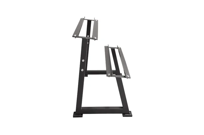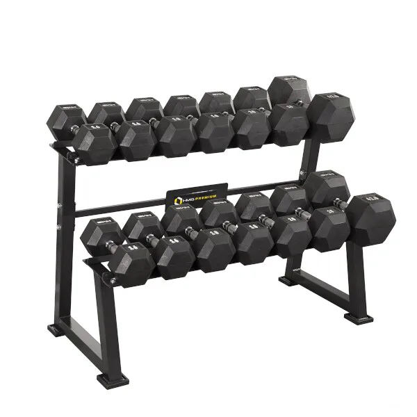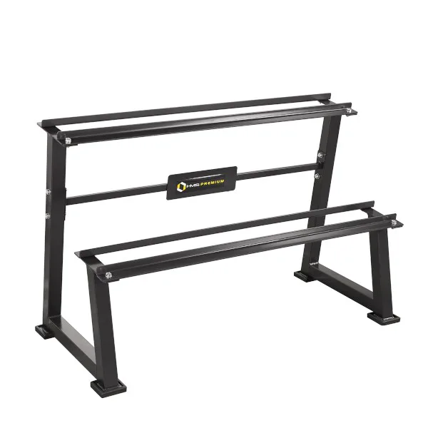 Stojan na jednoručné činky HMS Premium STR20 je ideálnym pomocníkom na uloženie až 7-mich párov činiek. Kvalitná oceľová konštrukcia je vyrobená z profilu 50 x 50 mm, vďaka tomu unesie zaťaženie až 500 kilogramov. Stojan má dve "koľajnice" o rozmere 122 x 22 centimetrov, ktoré sú umiestnené nad sebou pre ľahkú orientáciu medzi odkladaným náradím. Štyri nohy stojana sú opatrené gumovými pätkami, ktoré chránia podlahu pred jej poškodením.