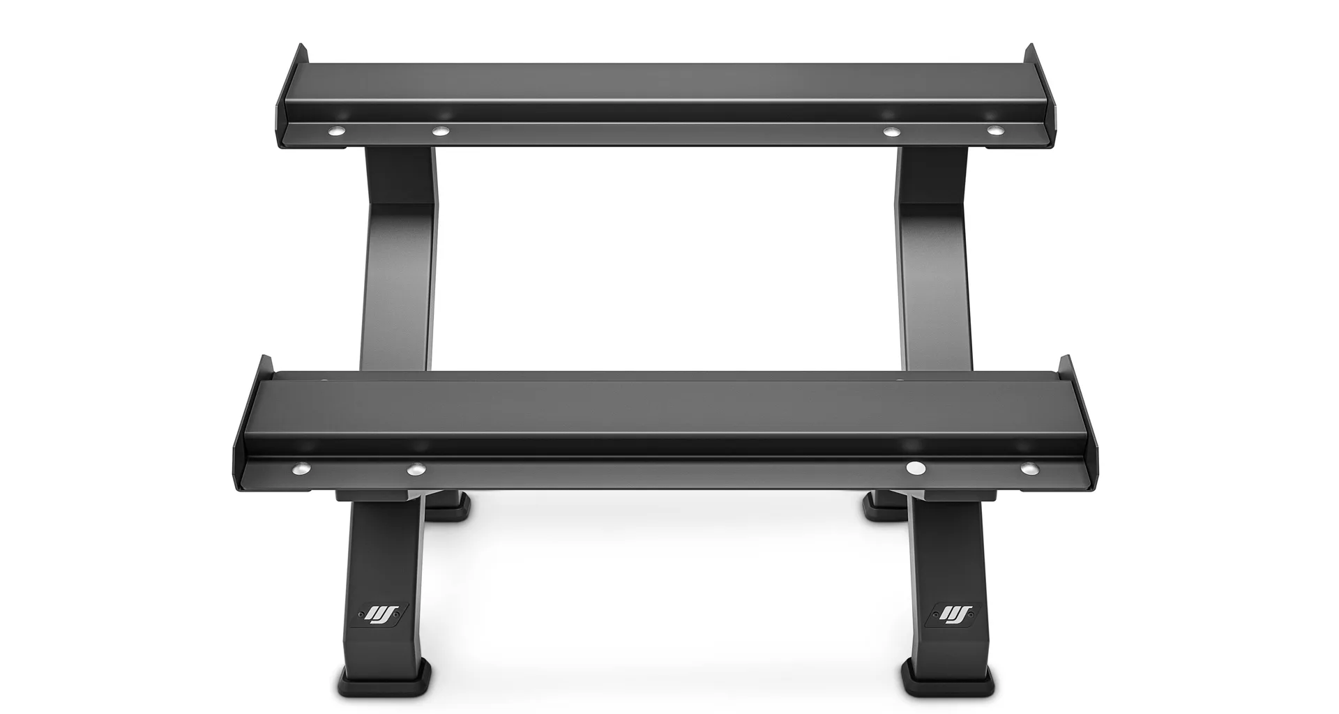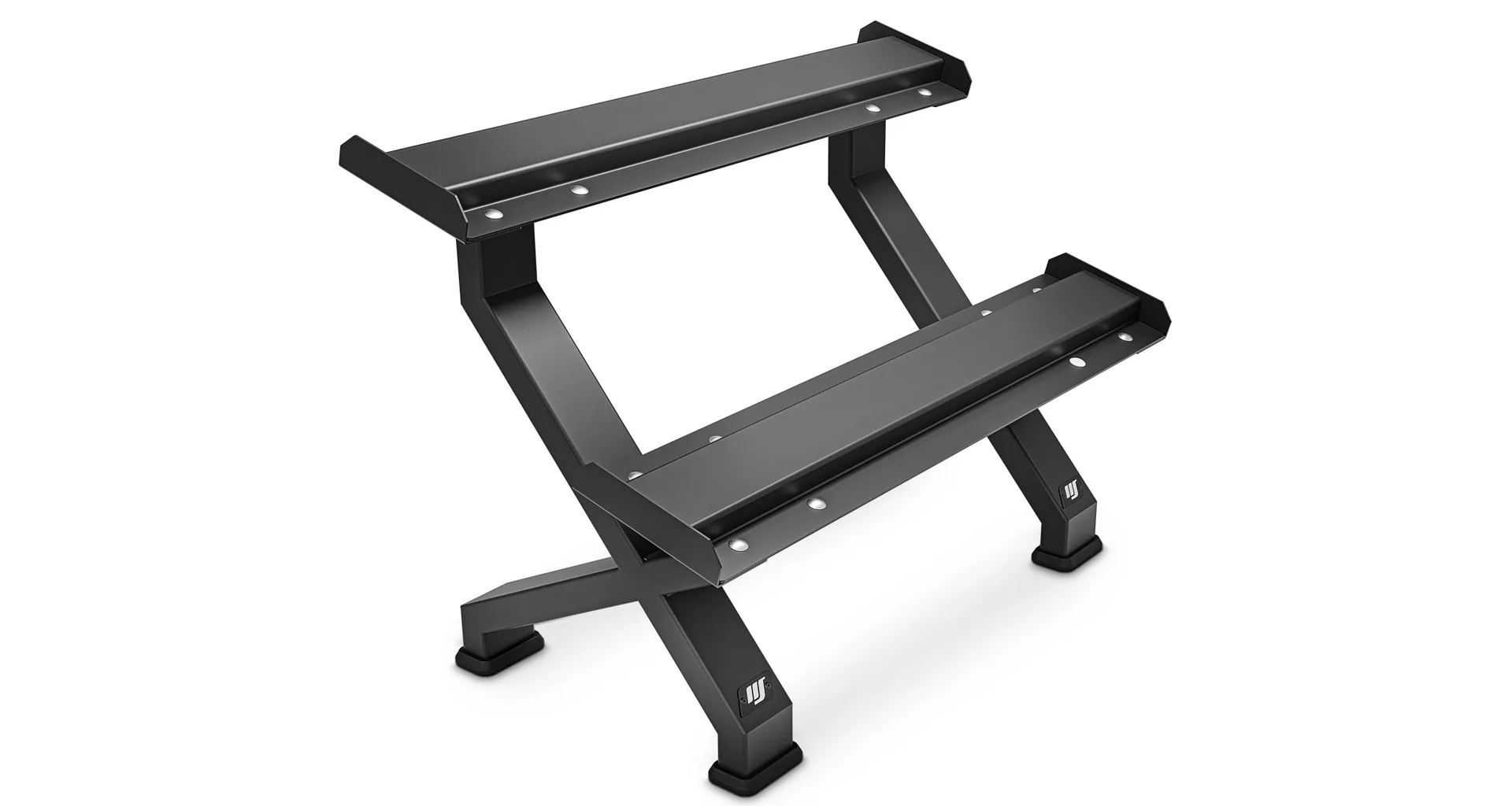 Noha stojana je vyrobená z oceľového profilu 100 x 50 x 3 mm a jej spodné časti sú osadené gumovou koncovkou, ktorá chráni podlahu pred poškodením a zvyšuje stabilitu stojana. Polica je vyrobená zo 4 milimetre silnej, oceľovej dosky a unesie až 325 kilogramov. K stranám police je priskrutkovaná zarážka, ktorá zamedzuje spadnutiu okrúhlych činiek. Prelis police je konštruovaný pre jednoručné činky s dĺžkou úchopovej časti 120 až 170 milimetrov.