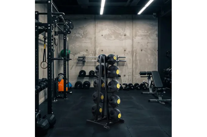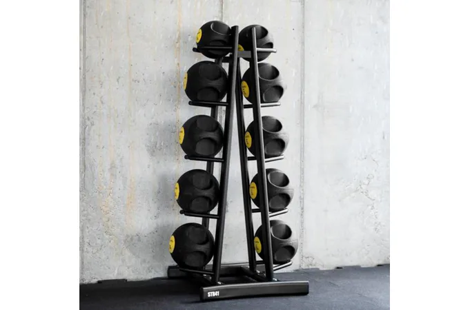 Stojan ponúka viac než len uloženie lôpt - múdra konštrukcia umožňuje využiť držiaky na uloženie ďalšieho príslušenstva, ako sú tréningové vaky, slam bally a iné vybavenie. Vďaka tomu je stojan STR41 univerzálnym riešením pre akýkoľvek fitness priestor. Stojan STR41 je vyrobený z odolnej ocele a poskytuje plnú stabilitu aj pri maximálnom zaťažení. Vhodne navrhnuté držiaky zaisťujú, že vybavenie sa nešmýka a je vždy na dosah pre väčšie pohodlie.