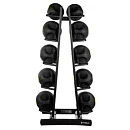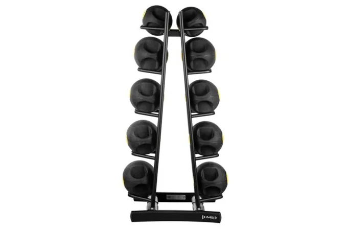 Stojan na fitness lopty a vaky HMS STR41 pomáha zorganizovať tréningové vybavenie a maximalizovať priestor. Vďaka vysokej konštrukcii a kapacite až pre 10 lôpt rôznych hmotností je ideálny pre posilňovne, fitness štúdia a domáce tréningové priestory. Stojan STR41 je navrhnutý tak, aby lopty ukladal vo zvislej polohe, čím šetrí miesto a umožňuje ľahký prístup k vybaveniu. Vďaka tomu môžete na menšom priestore uložiť viac lôpt a udržať si tak poriadok vo svojom tréningovom priestore. Vďaka maximálnej nosnosti 200 kg do neho ľahko uložíte aj ťažšie lopty.