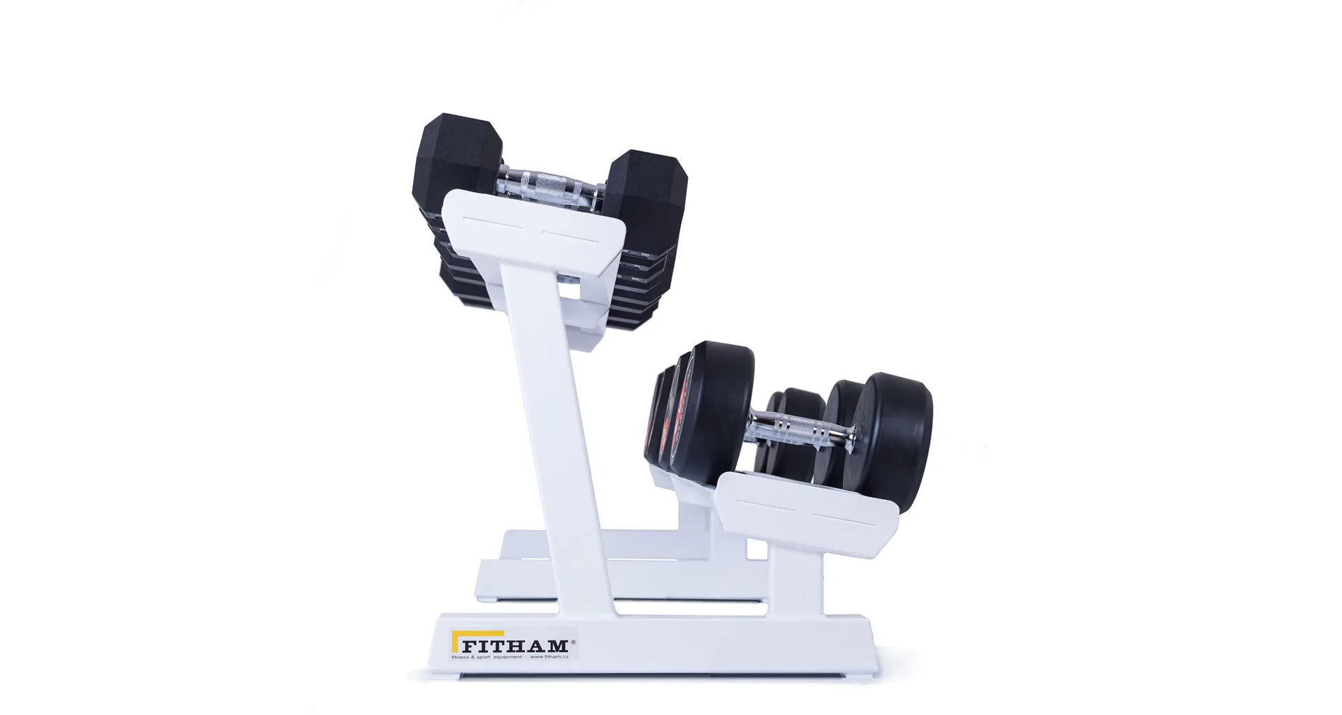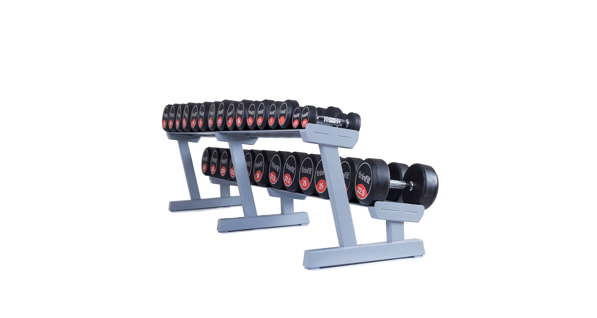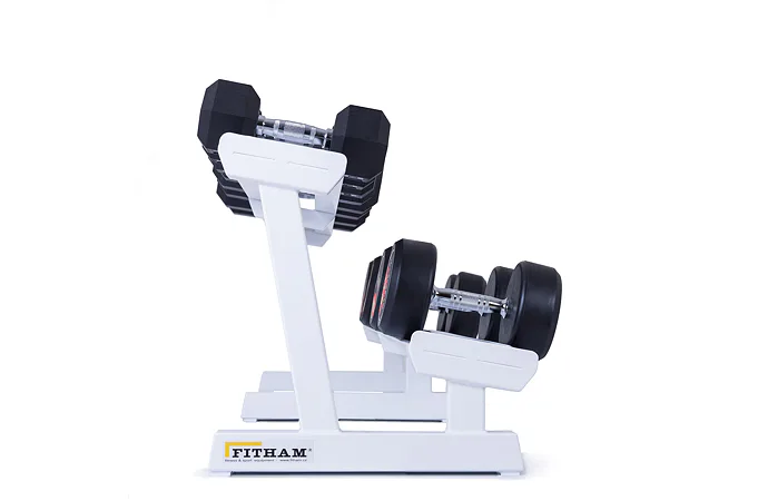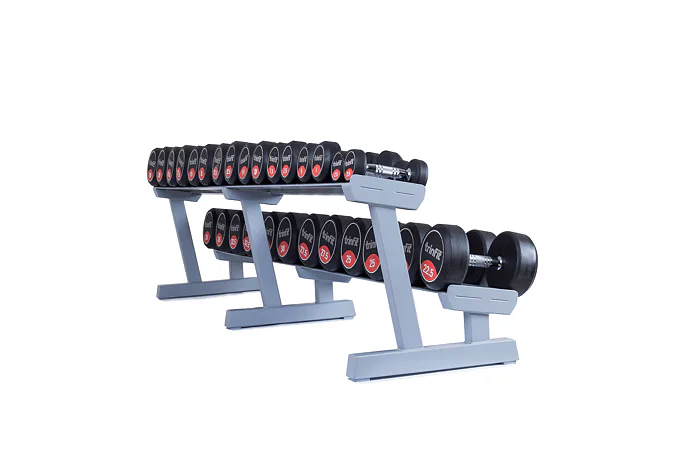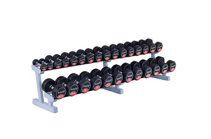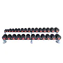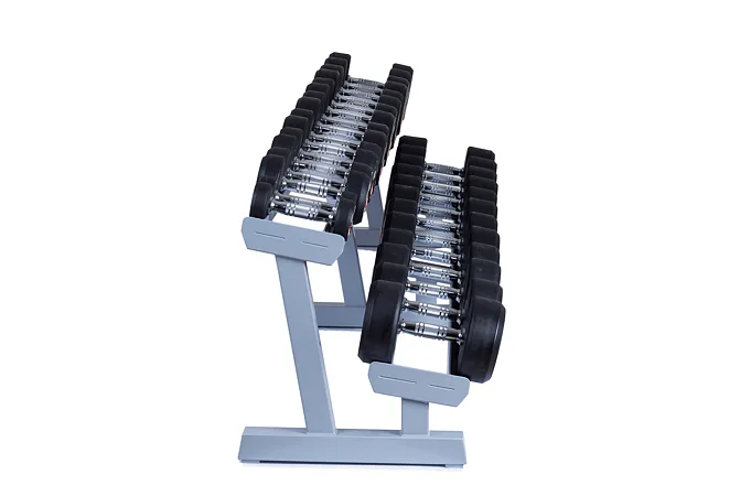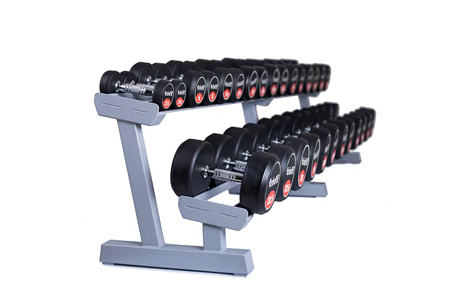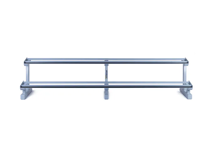 Profesionálny dvojradový stojan na jednoručky FITHAM 2,5 m je určený pre kluby a komerčné fitness centrá. Slúži na odkladanie jednoručných činiek. Stojan je vyrábaný na zákazku v požadovanej rozteči a farebnom prevedení.