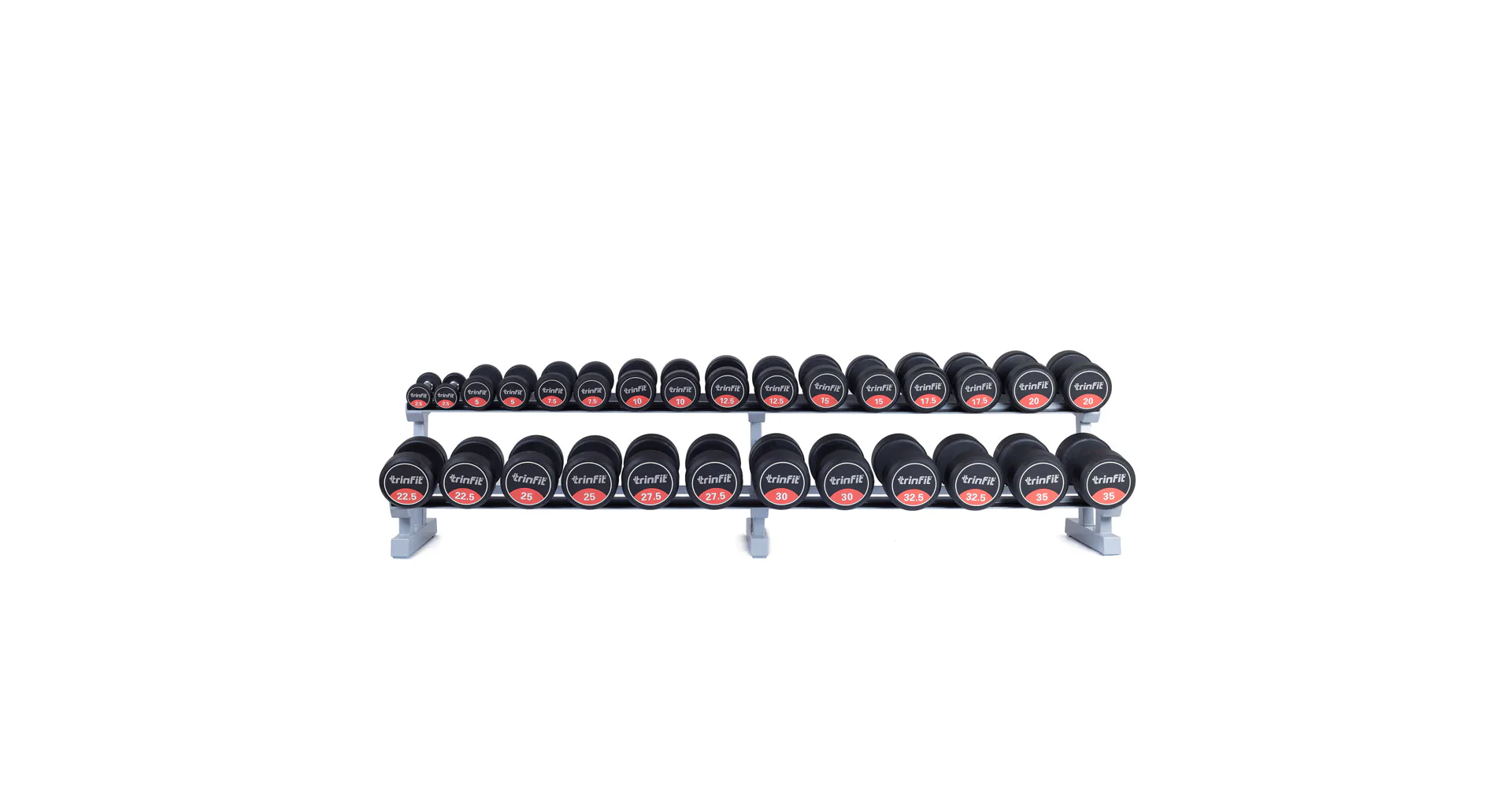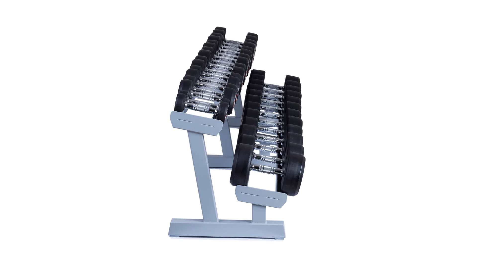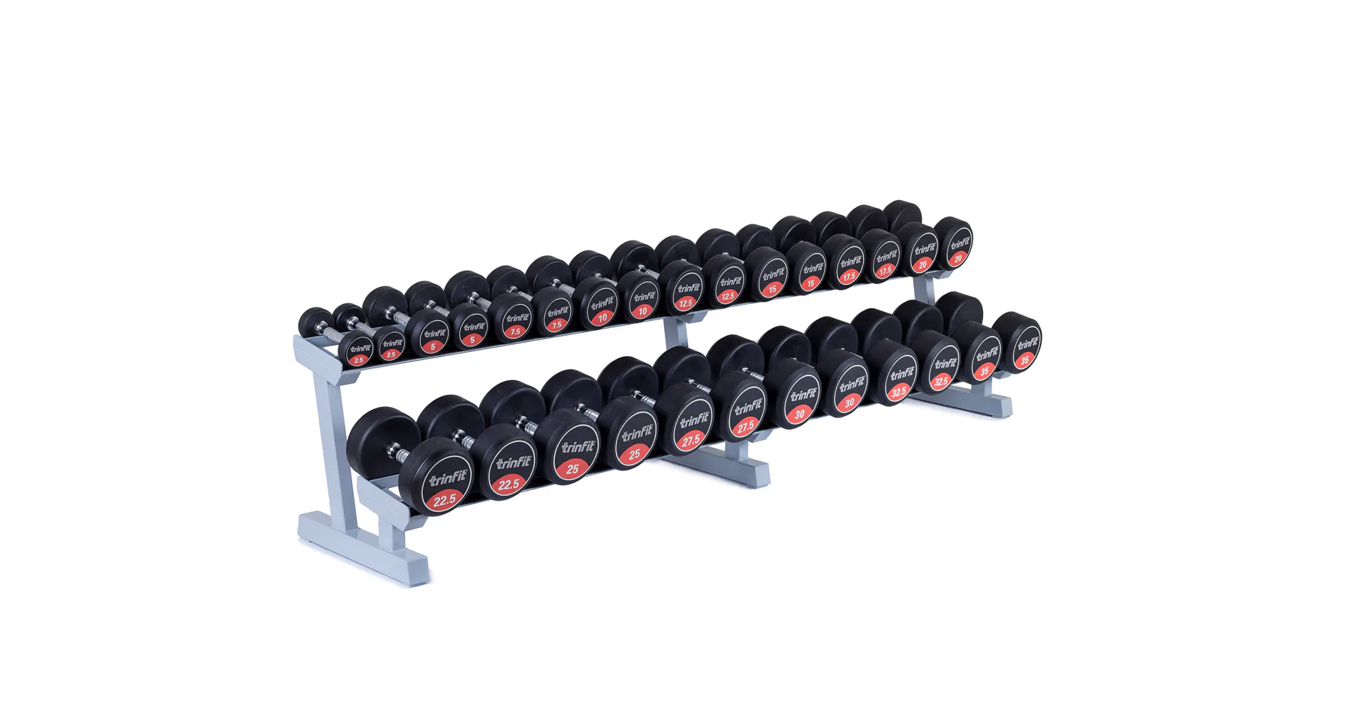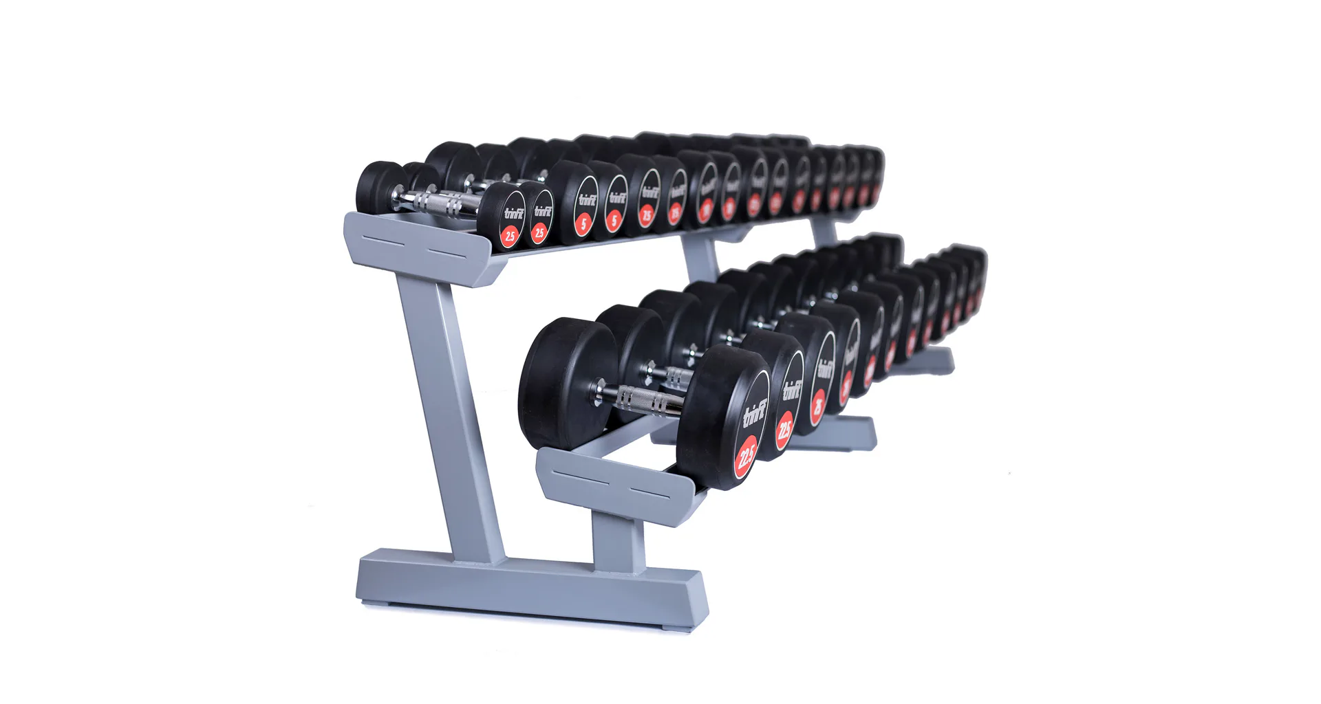 Profesionálny dvojradový stojan na jednoručky FITHAM 2,5 m je určený pre kluby a komerčné fitness centrá. Slúži na odkladanie jednoručných činiek. Stojan je vyrábaný na zákazku v požadovanej rozteči a farebnom prevedení.