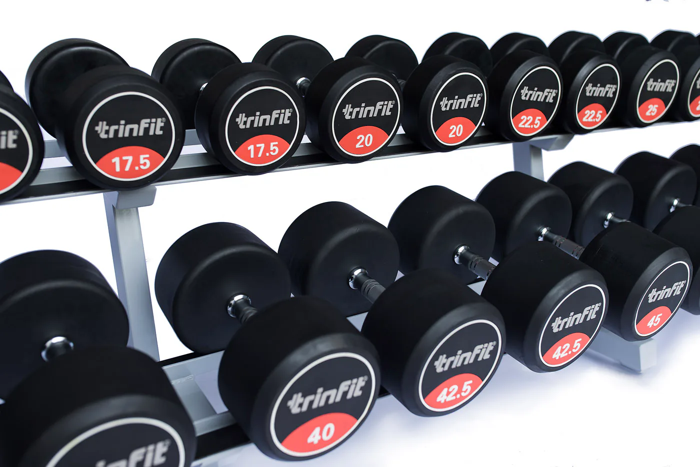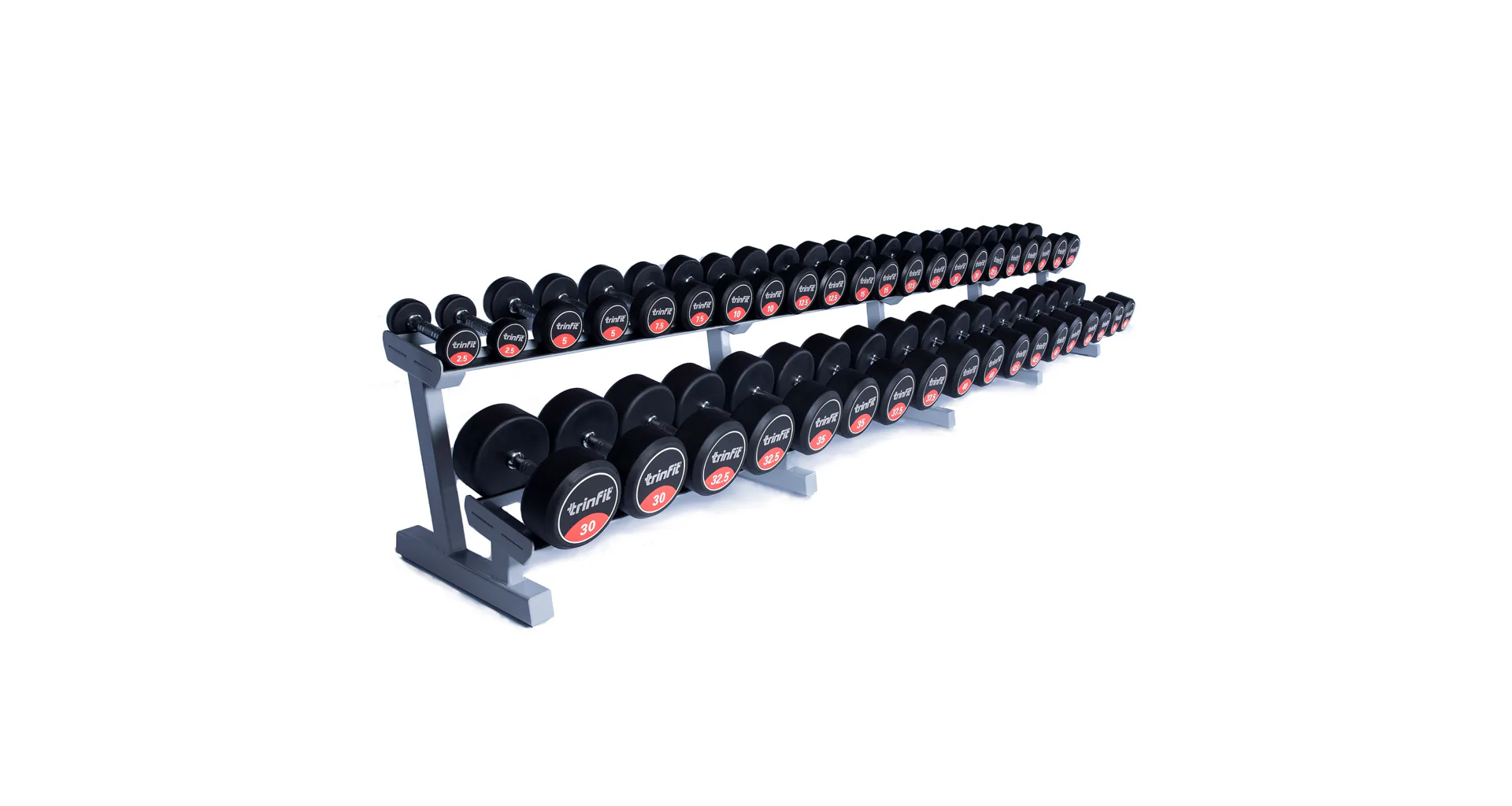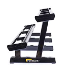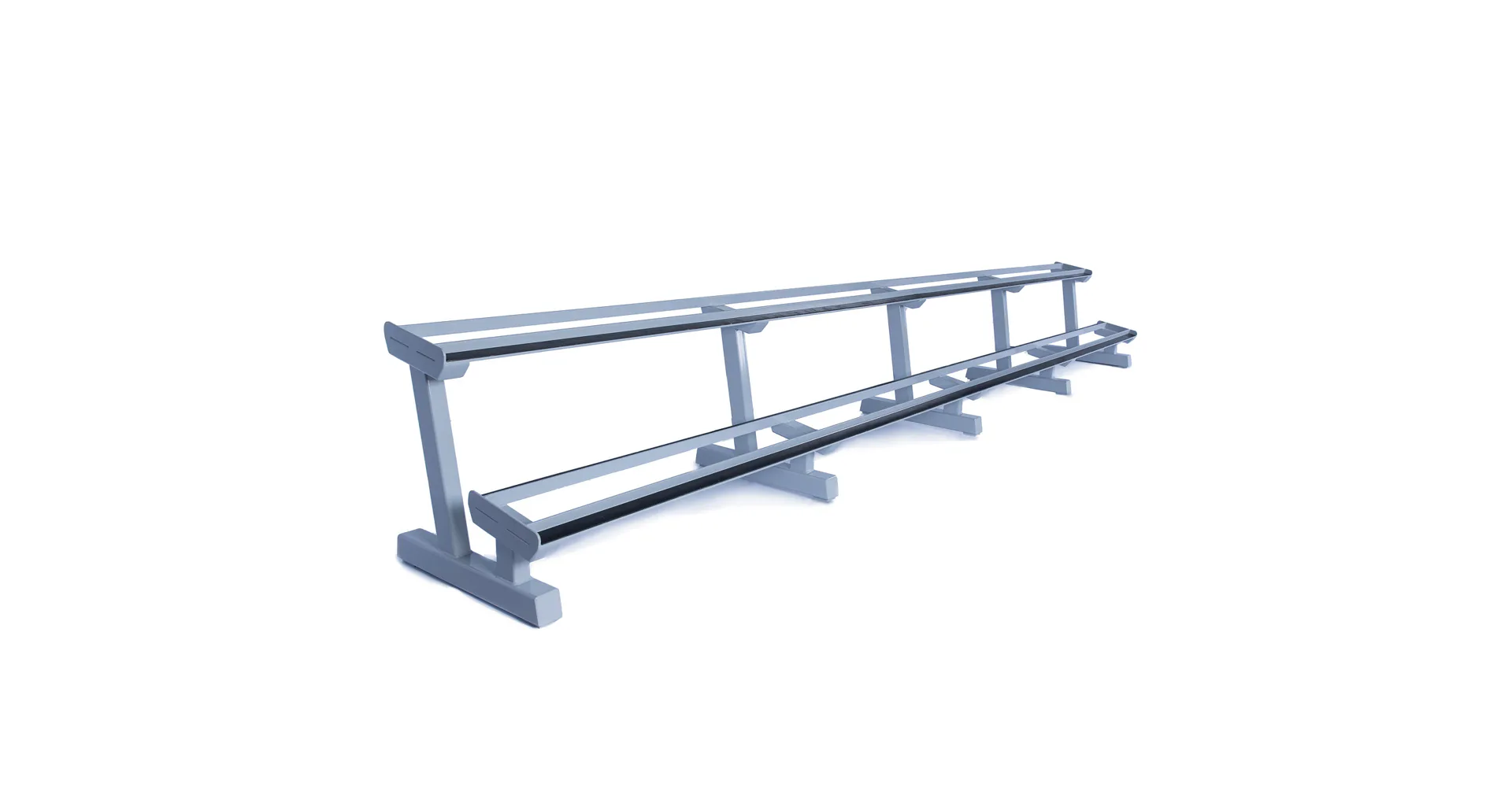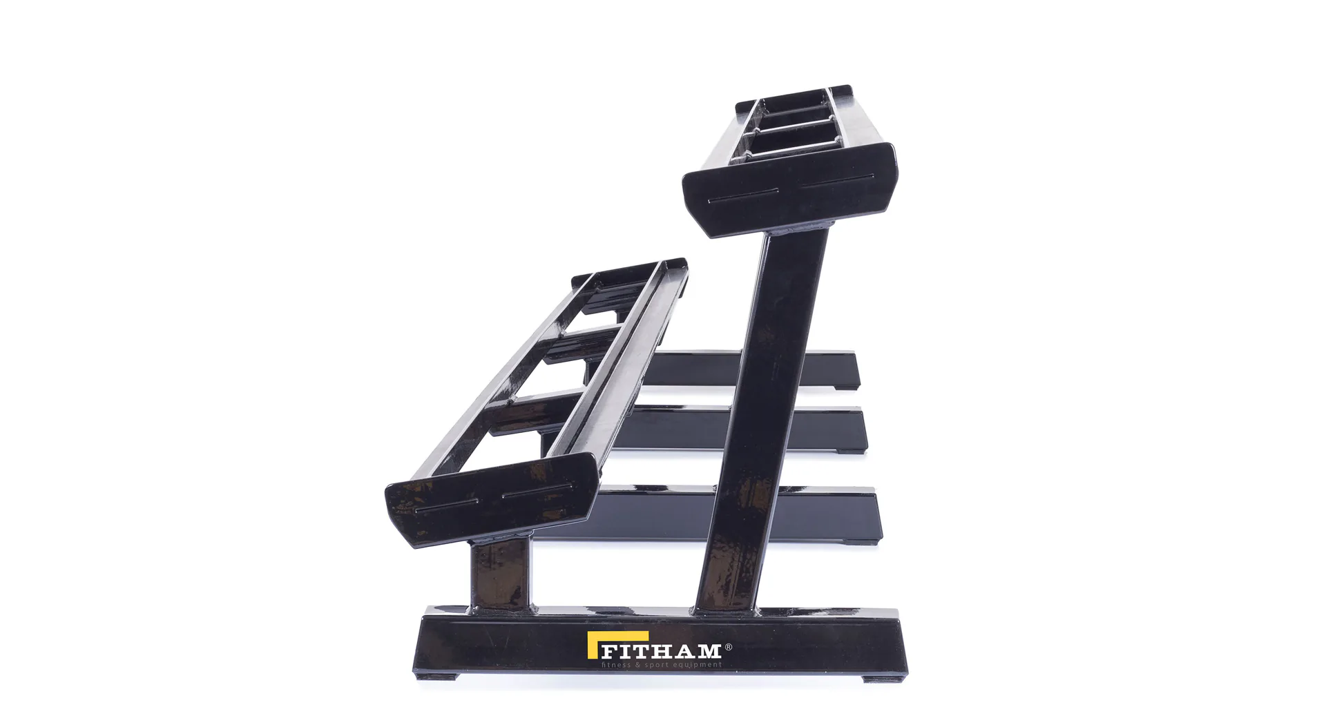 Profesionálny dvojradový stojan na jednoručky FITHAM 4 m je určený pre kluby a komerčné fitness centrá. Slúži na odkladanie jednoručných činiek. Stojan je vyrábaný na zákazku v požadovanej rozteči a farebnom prevedení.