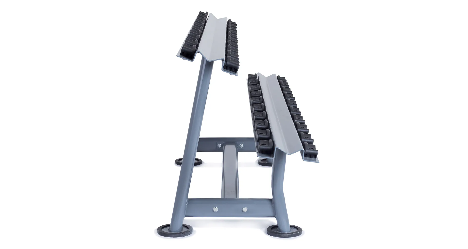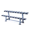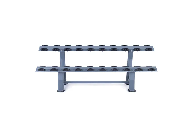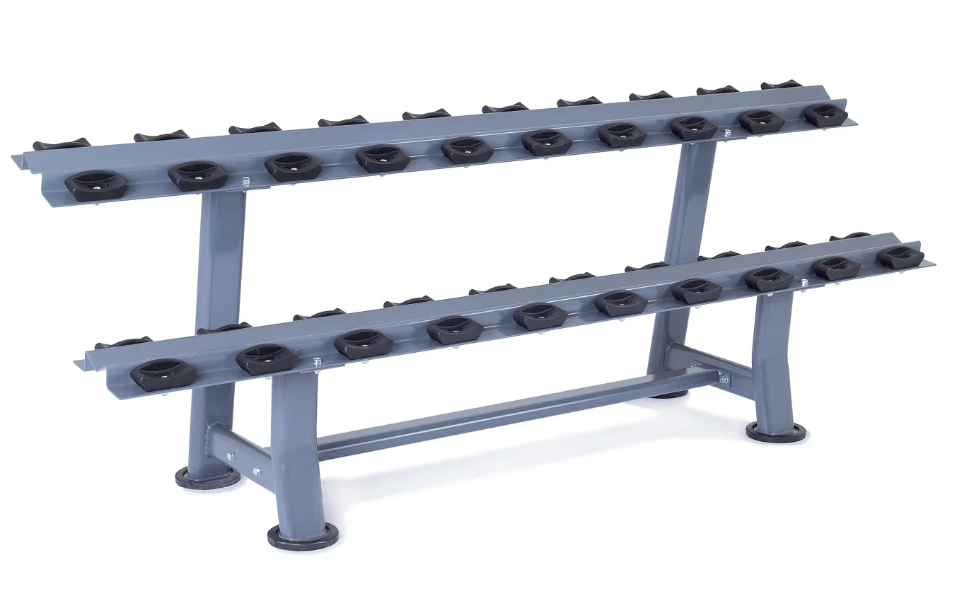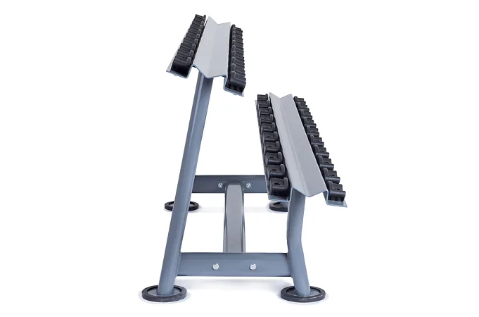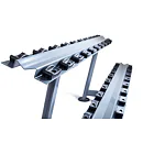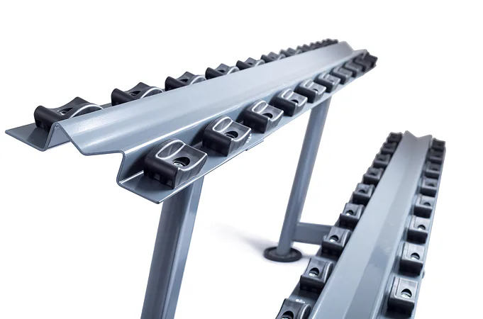 Odkladací stojan na jednoručky TRINFIT Rack Comfort je určený pre komfortné uloženie jednoručných činiek v komerčných, klubových aj domácich posilňovniach. Vďaka konštrukcii s gumoplastovými lôžkami pre každú činku, sú jednoručky uložené prehľadne každá na svojom mieste a v stojane sa nehýbu. Stojan je vyrobený z kvalitného kovu, masívnej konštrukcie a horný ohýbaný profil s hrúbkou 5 mm zaručuje jeho vysokú tuhosť, pevnosť a nosnosť. Na stojan pohodlne uložíte jednoručky s celkovou váhou až 300 kg.