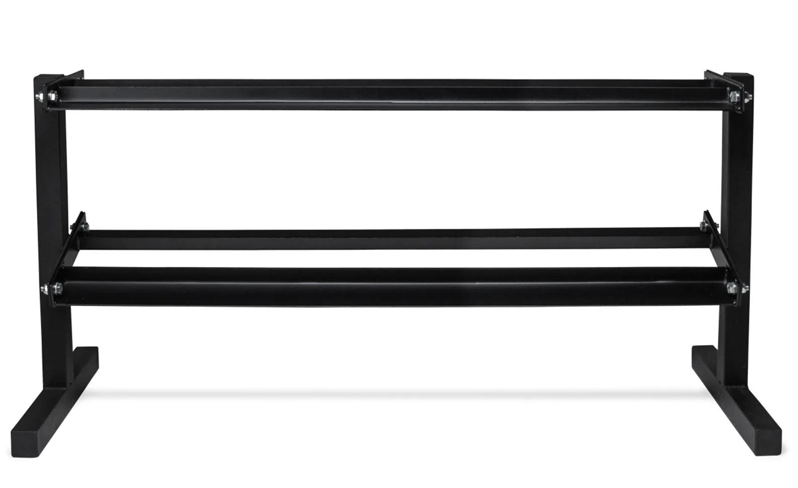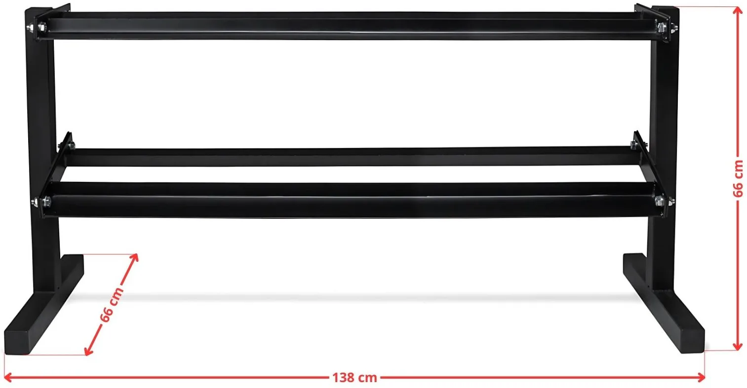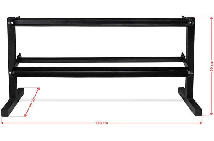 VIRTUFIT Dumbbell Rack Pro Double zaistí, že vaša posilňovňa zostane čistá, organizovaná a predovšetkým bezpečná. Tento stojan má, ako názov napovedá, 2 police, na ktoré je možné umiestniť činky.