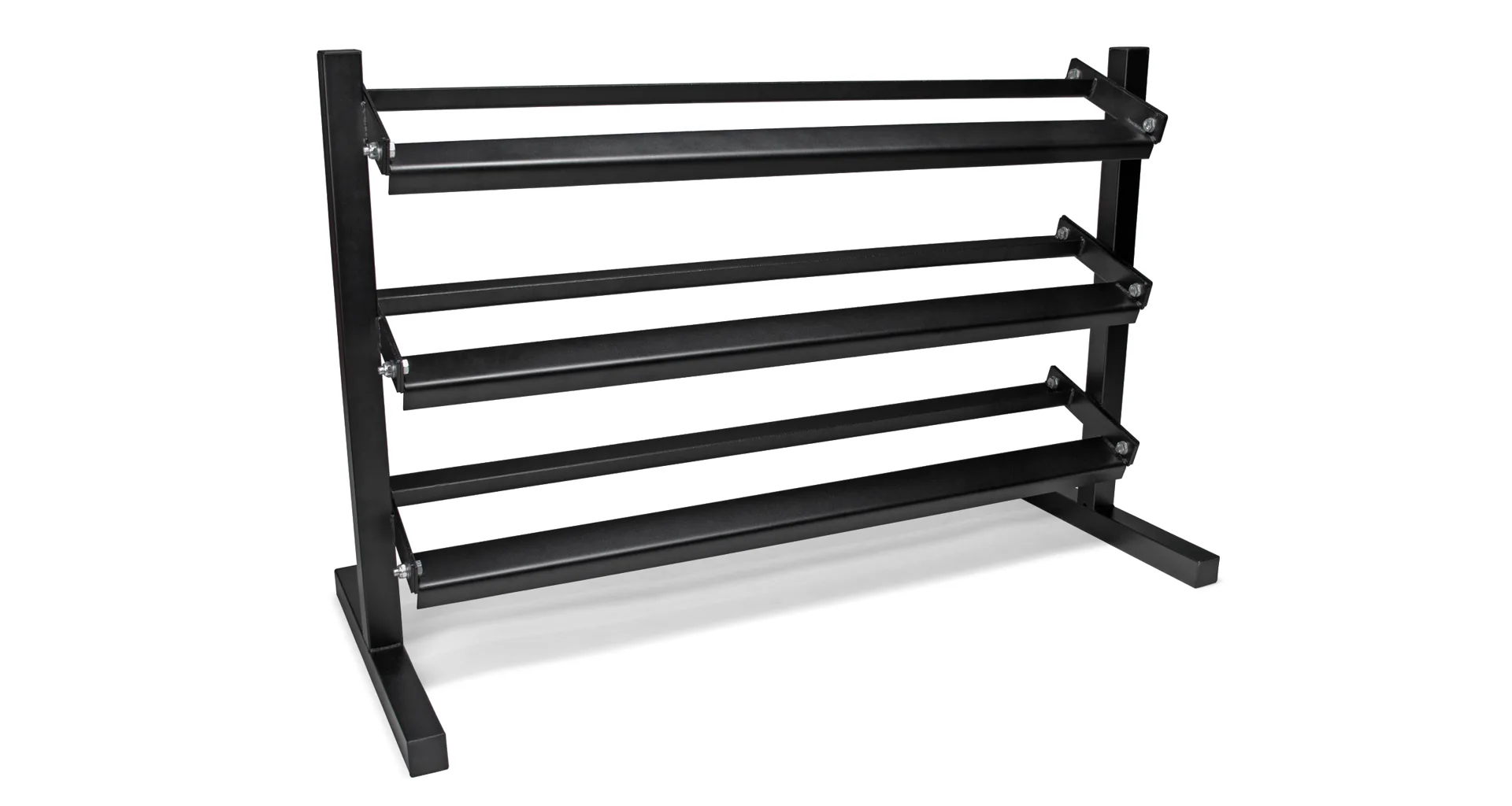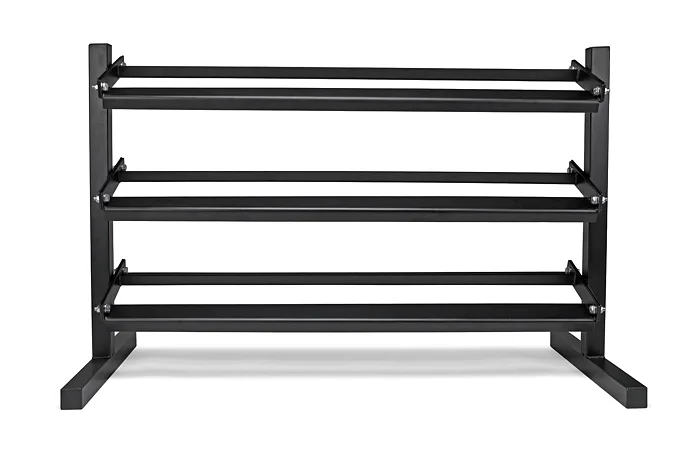 VIRTUFIT Dumbbell Rack Pro Triple zaistí, že vaša posilňovňa zostane čistá, organizovaná a predovšetkým bezpečná. Tento stojan má, ako názov napovedá, 3 police, na ktoré je možné umiestniť činky.