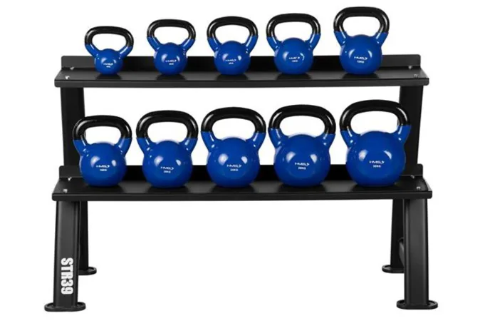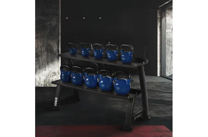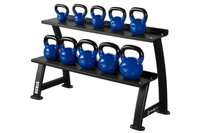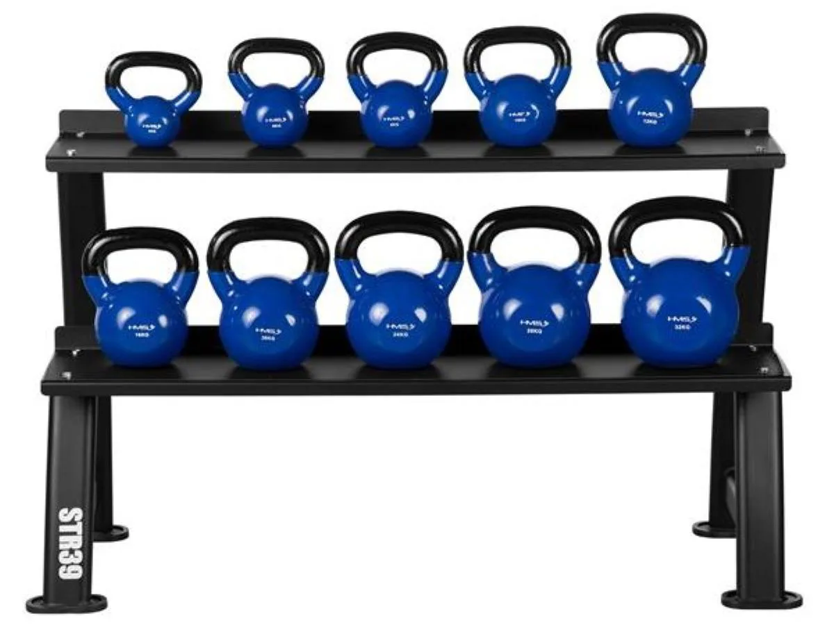 Stojan na kettlebelly HMS STR39 je robustný dvojúrovňový stojan na kettlebelly od spoločnosti HMS, ktorý umožňuje pohodlné a bezpečné uloženie závažia s hmotnosťou až 300 kg. Vďaka stabilnej konštrukcii a protišmykovému povrchu zostanú kettlebelly na svojom mieste aj pri intenzívnom používaní.