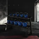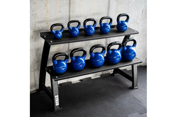 Stojan tvoria dve police, ktoré pojmú dohromady až tucet kettlebellov rôznych veľkostí. Vďaka optimálnym rozmerom majú používatelia rýchly a pohodlný prístup k závažiam, takže tréning je o to pohodlnejší. Nemusíte sa obávať, že by kettlebelly skĺzli - povrch políc je opatrený gumou, ktorá zabraňuje ich pohybu, čím je zaistená bezpečnosť vybavenia aj užívateľov. Robustná oceľová konštrukcia navyše zaručuje stabilitu aj pri maximálnom zaťažení.