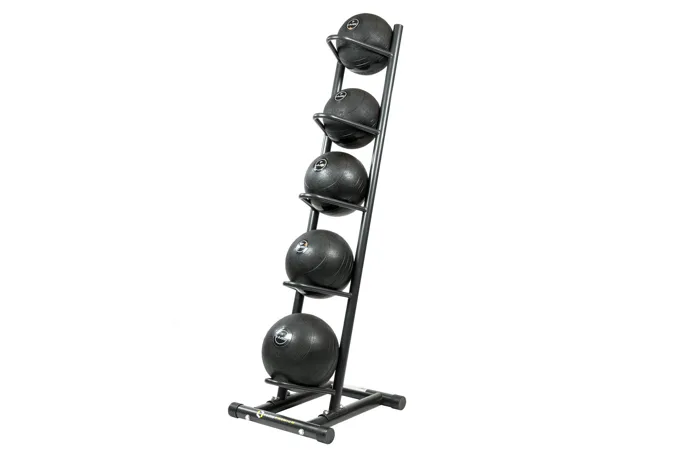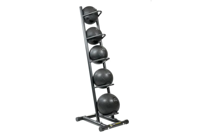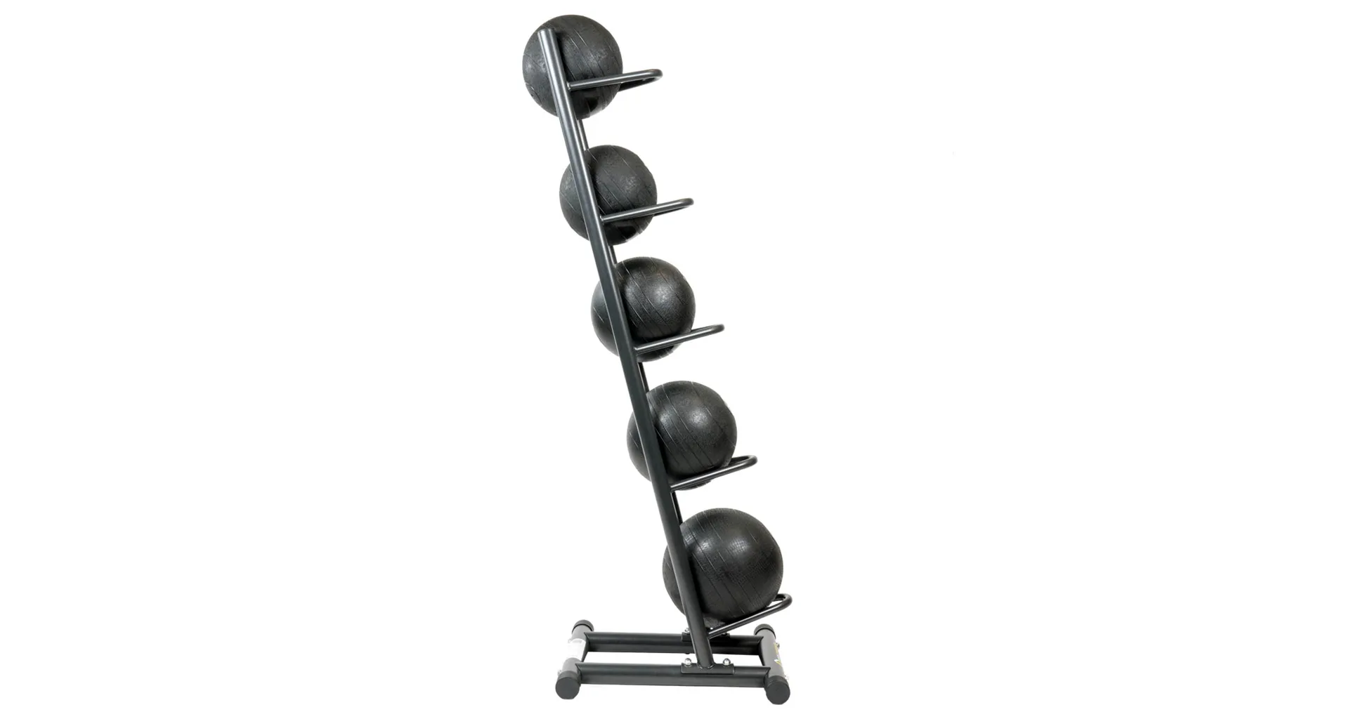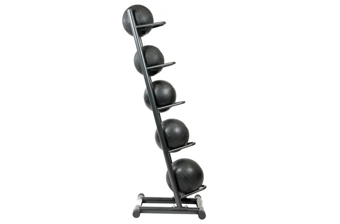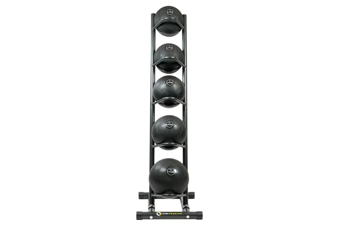 Stojan HMS Premium STR06 je navrhnutý na ukladanie lôpt, slamballov, medicinbalov a pod. do priemeru 28 cm. Stojan má 5 odkladacích pozícií. STR06 je vyrobený s ohľadom na bezpečie užívateľov aj odkladaného náradia z kvalitných oceľových profilov.