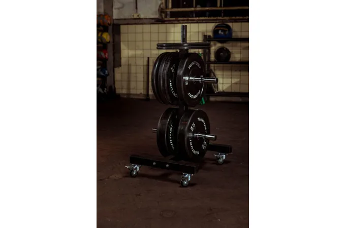 Pojazdný stojan BUMPER Plate od značky TUNTURI je praktické a veľmi efektívne riešenie na uloženie vašich kotúčov. Stojan umožňuje bezpečné a pohodlné uloženie kotúčov ako liatinových, ale predovšetkým gumových BUMPER platov.