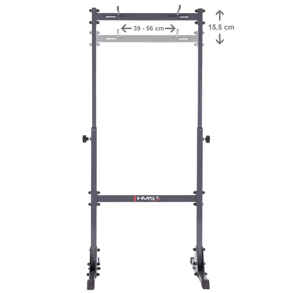 Stojan HMS Premium STR14 je navrhnutý na odkladanie štúdiových, fitness a rozmernejších jóga podložiek. Stojan má nastaviteľnú výšku a rozstup odkladacích tŕňov, je teda univerzálny pre všetky rozmery podložiek. HMS Premium STR14 je vyrobený s ohľadom na bezpečie užívateľov aj odkladaného náradia.