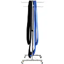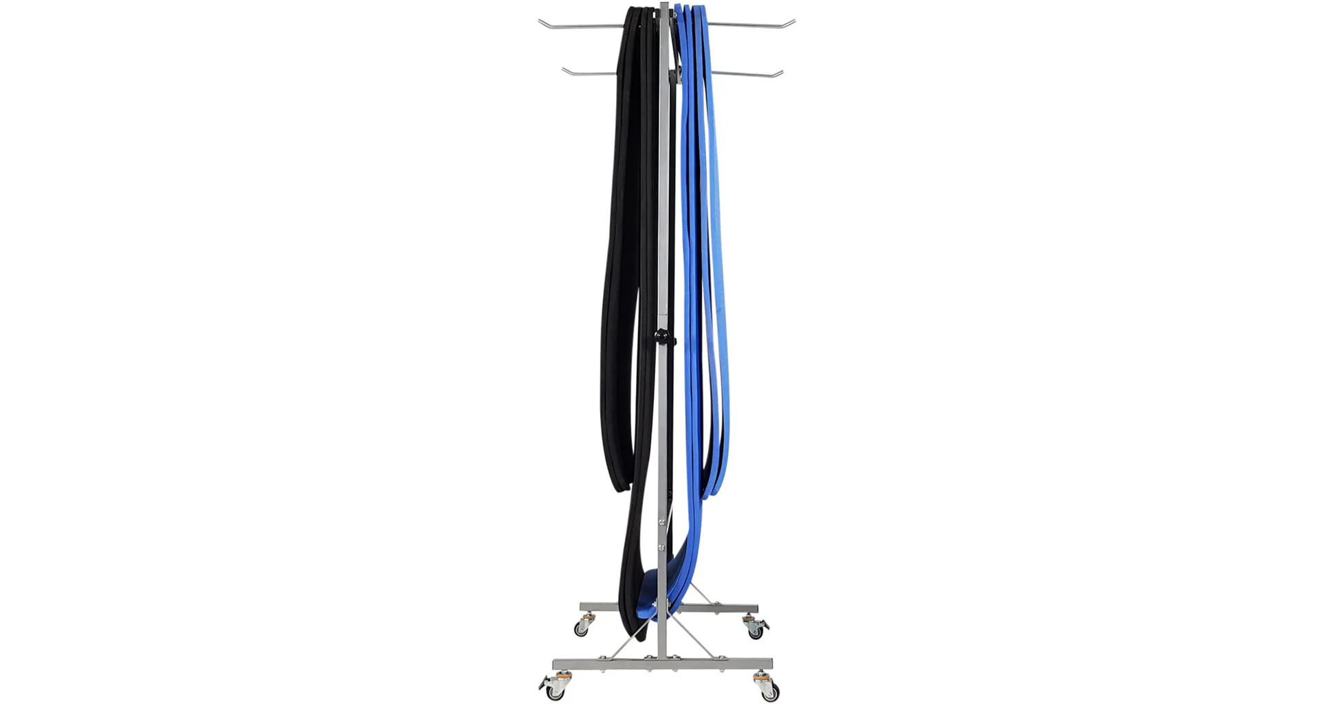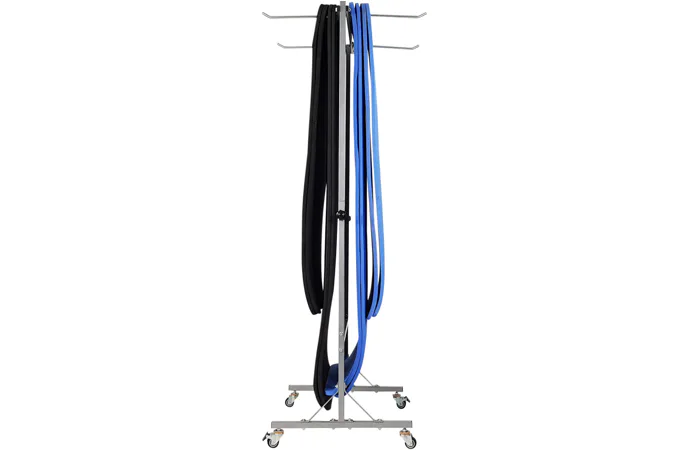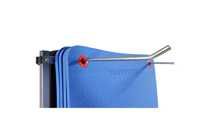 Stojan na podložky pojazdný TUNTURI Mat Transport Rack je ideálnou pomôckou na zavesenie podložiek s prídavnými okami. Vďaka tomuto stojanu môžu byť podložky zavesené a nemusia byť pracne rolované. Háčiky na podložky sú nastaviteľné, nosnosť stojana je do 20 kg. Veľkým plusom sú kolieska v spodnej časti stojana, vďaka ktorým je veľmi ľahké presunúť stojan z jedného bodu do druhého.